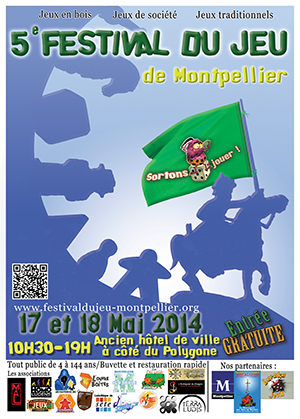 Le festival du jeu de Montpellier “Sortons jouer” revient pour une 5ème édition. Il aura lieu les 17 et 18 mai 2014 de 10h30 à 19h à l’ancien hôtel de ville à coté du polygone (même endroit que l’année dernière.