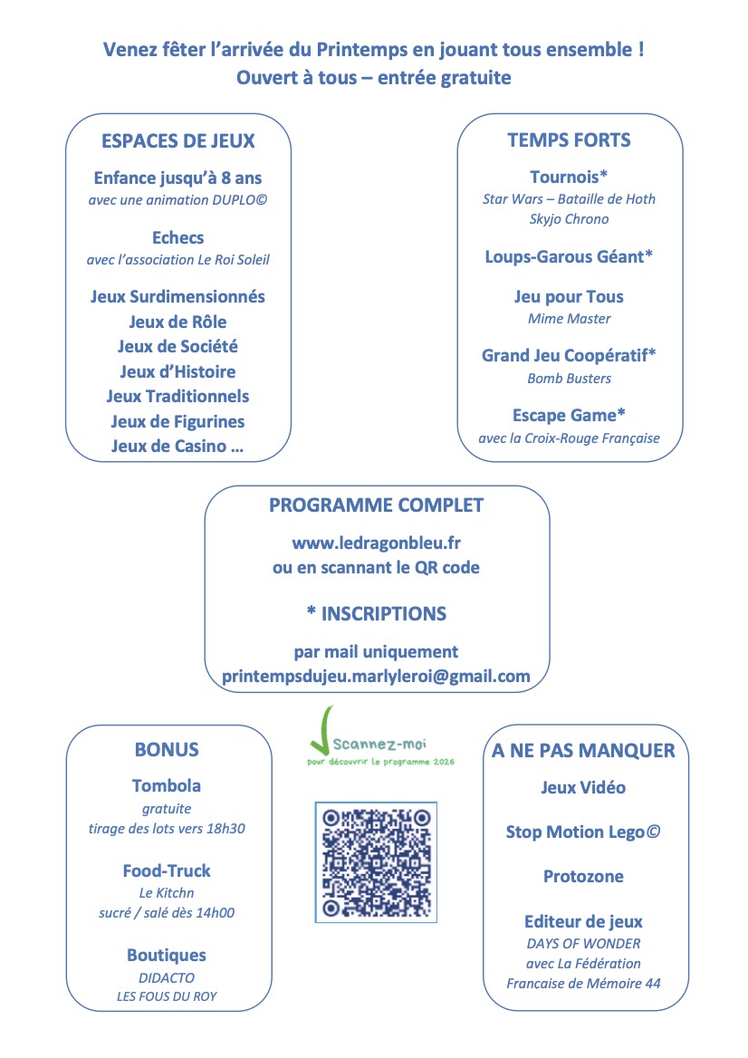 La Ludothèque Le Dragon Bleu et le Pôle Jeunesse vous invitent à fêter l’arrivée du printemps en jouant ensemble, toute la journée et au delà !