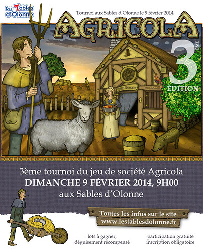 Et 1, et 2 et 3, partez… pour la 3ème édition du tournoi d’Agricola à la ferme des Tables d’Olonne ? Que vous ayez participé aux précédentes éditions ou pas, que vous soyez un fermier cultivateur ou un fermier éleveur, que vous soyez maitre en savoir-faire ou apprenti en aménagement mineur, venez jouer avec nous !