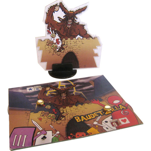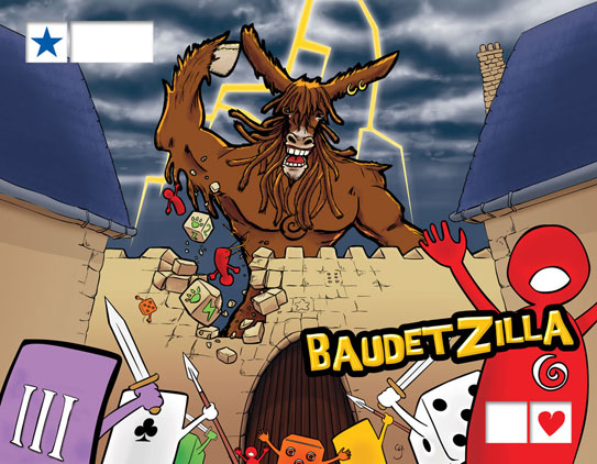 (l’affiche et le tableau des scores géant parodient King of Tokyo, de IELLO)