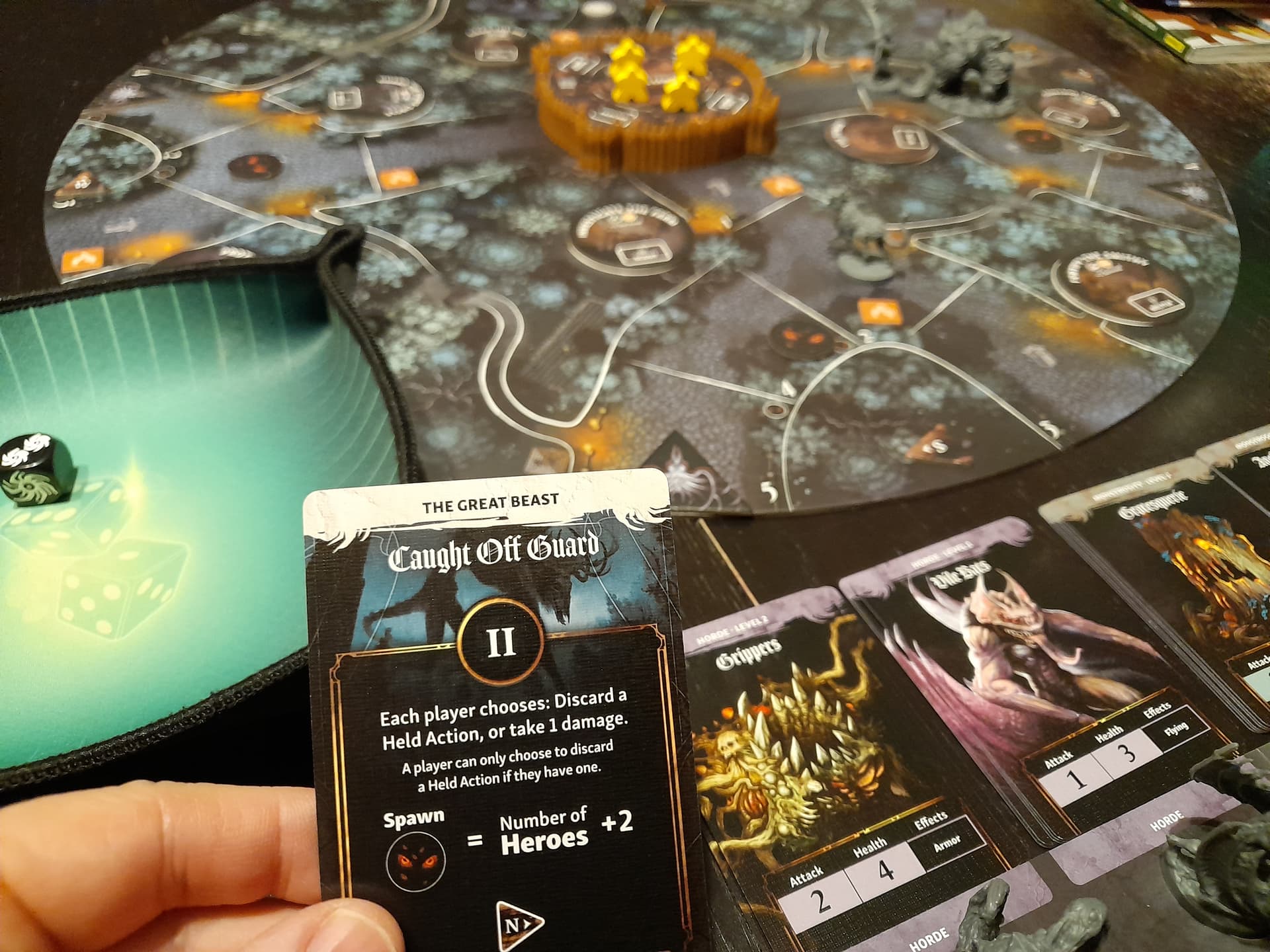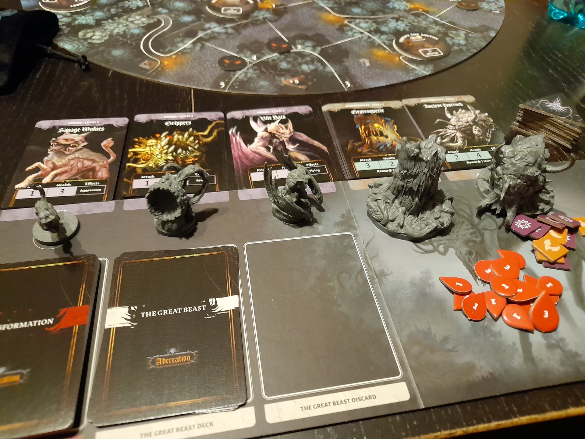 On pioche la carte “the great beast” (qui sert aussi de compte-tour)