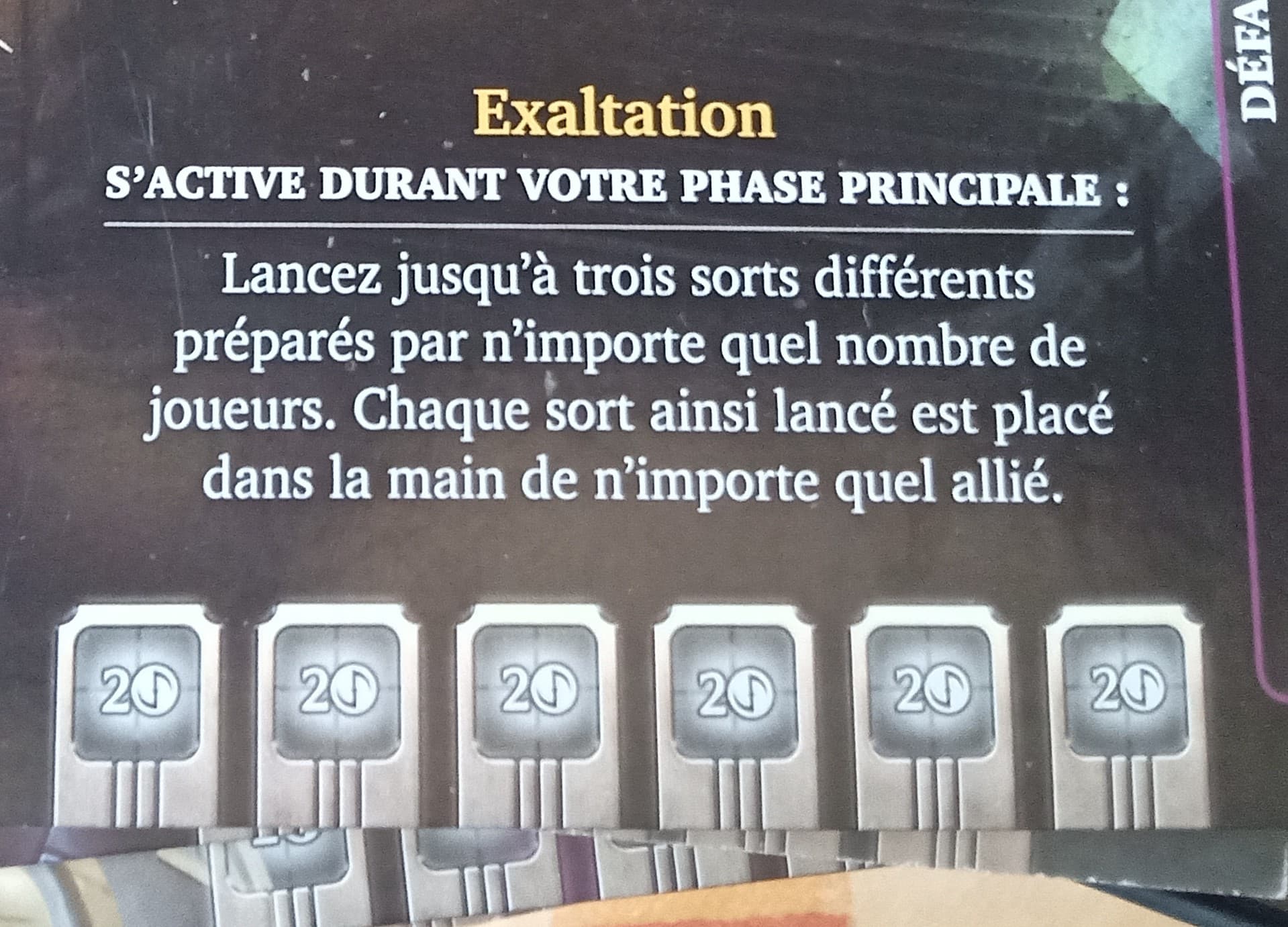 Chaque sort ainsi lancé est placé dans la main de n’importe quel allié : je répartis les sorts choisi entre mes alliés. Il les place dans leur main c’est-à-dire qu’ils pourront les jouer directement à leur prochain tour et avoir une main de plus de 5 cartes ?