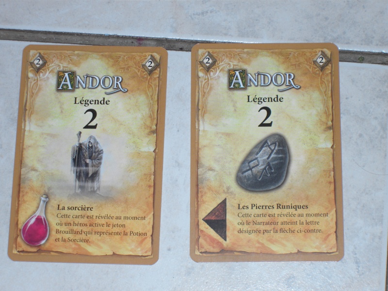 Il est également fait mention de “carte légendes 2 de la sorcière et des pierres runiques”. Je ne vois rien de tel dans ma boîte…
