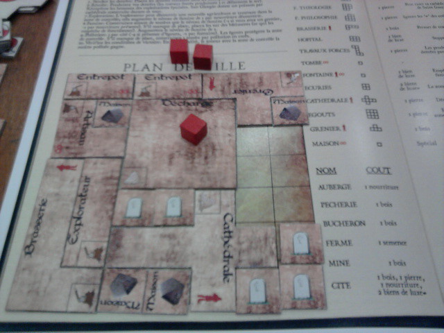 Ah, j’ai failli oublier : un ami m’avait demandé de le mettre à disposition alors … voilà Si ça intéresse quelqu’un, il s’agit de la VF de l’aide de jeu (format A3) que j’avais refaite. Le seul petit truc c’est que les illustrations des denrées et autres matérieux ne correspondent pas au jeu original mais avec un peu de bonne volonté on doit pouvoir s’y retrouver La taille du plan de ville devrait être correcte mais je n’ai pas vérifié (dans le cas contraire vous avez le droit de me jeter des tomates ).