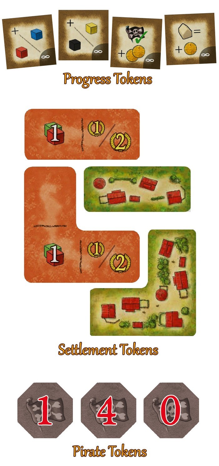 Le plateau de jeu est complètement modulable et la première chose est la découverte d’un nouvel archipel à conquérir qui sera très différent d’une partie sur l’autre. Un système de tuiles agencées façons puzzle offrira aux joueurs des séries d’îles plus ou moins vastes. Ces îles sont découpées en zones carrées sur lesquelles viendront se greffer en cours de jeu, les tuiles de développement (Villages et terrains cultivés). Là encore, on retrouvera un système de puzzle avec des tuiles façon Tétris qu’il faudra disposer de la manière la plus optimisée.