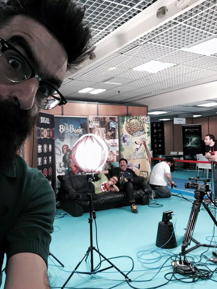 Lors du Festival International des Jeux de Cannes, nous avions un espace Tric Trac TV avec un studio, un canapé et tout ça. C’est bien, les gens viennent nous voir et tout ça, mais il nous manquait un truc. Oui.