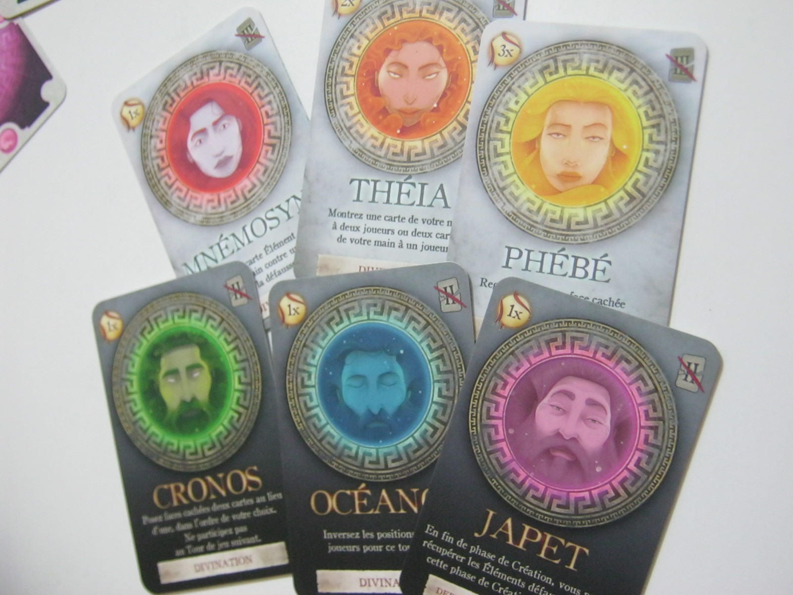 Le jeu propose plusieurs variantes. Le premier vous propose de jouer avec des titans, chaque joueur choisit le titan désiré ce qui lui octroie alors un pouvoir pour la partie. La seconde variante introduit des éléments altérés, ce qui aura pour effet d’ajouter des pouvoirs négatifs lorsque vous jouerez certaines cartes avec un symbole. Enfin, la dernière façon de jouer est de manière totalement silencieuse. Quelques ajouts qui permettent de rallonger la durée de vie du jeu.