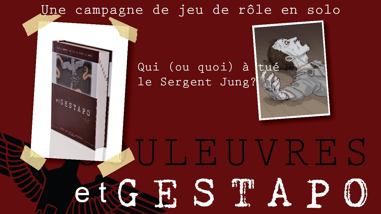 Encore une fois, une petite déception. J’ai toutefois relu les tomes 1 à 12 avec cette application. Mais je suis resté sur ma faim. Premièrement, je n’enlève en rien au génie de Joe Dever, il a su créer un Univers intéressant et un héros crédible. Cependant, la mécanique de jeu est particulièrement pénible. L’exemple le plus pertinent est dans le 2e tome. Si le joueur n’a pas la capacité de communiquer avec les animaux, il doit absolument trouver la lance magique. Si l’une de ces conditions n’est pas remplie, la réussite du livre est impossible. Tous les chapitres mènent à une mort assurée. C’est donc en fermant le tome 12 de la série que l’idée a germé. Je commençai donc à mettre sur papier une première version qui deviendra plus tard, Couleuvres et Gestapo. La première chose à faire fut d’établir une mécanique de jeu de base.