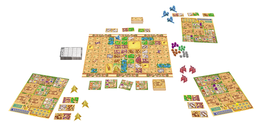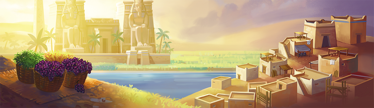 Ici on se retrouve dans l'antiquité, dans la vallée du Nil, où chaque joueur va être invité à construire sa métropole sous formes de petits quartiers et réussir à accumuler le plus de Debens qui sont les points de victoire du jeu à l'aide principalement de ses boutiques.
