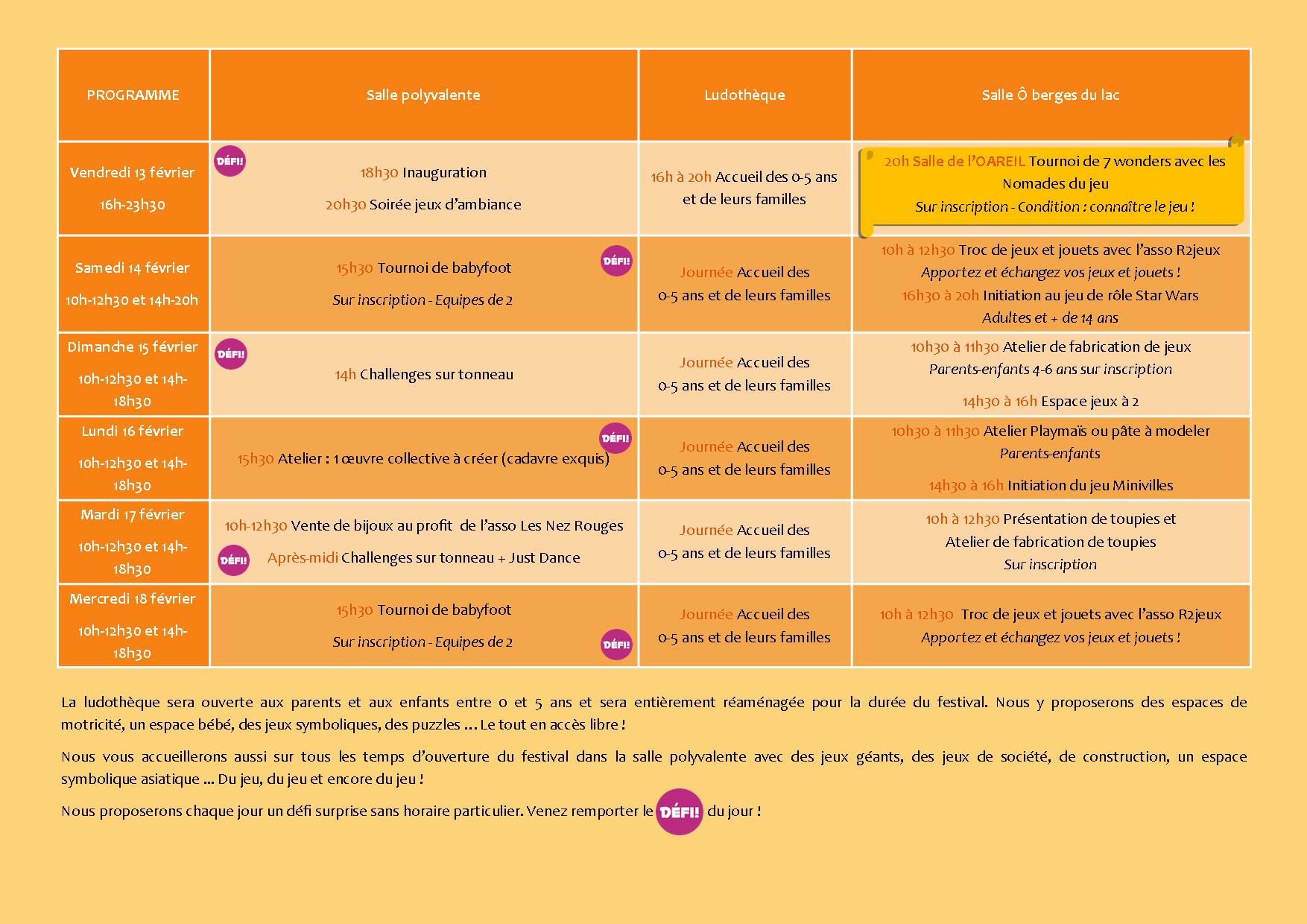 En vrac, il y aura de l’atelier de fabrication de jeux pour les plus jeunes, une exposition autour des toupies, des tournois de babyfoot, des défis variés (chifoumi géant, pesée du jambon de la pétanque d’intérieur et d’autres surprises).