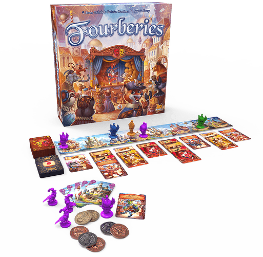 Les deux fripouilles nous emmènent bientôt (Fourberies sera une des sorties février 2016 pour le Festival International des Jeux de Cannes) dans un univers de tréteaux et de déclamations, un foisonnement de plumes, de velours, de soieries et de bijoux de pacotilles pour des troupes itinérantes de théâtre. Et chacune de rêver à la gloire mais pas seulement puisque l'objectif est ici de terminer le plus riche à la fins des deux Saisons qui constituent une partie de Fourberies.