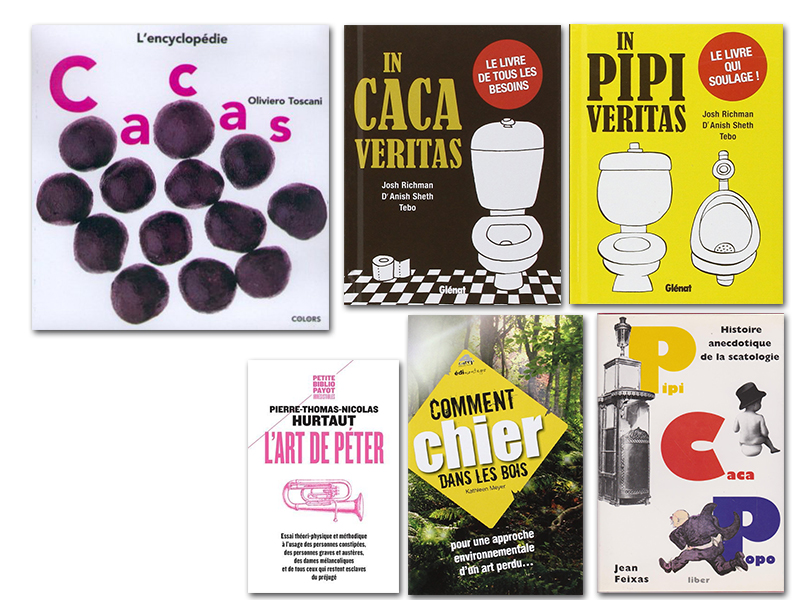 - Sans aucune honte, vous trouvez chez moi Pipi, Caca, Popo, histoires anecdotiques de la scatologie. Tout est dans le titre, de Jean Fexas chez Liber.
