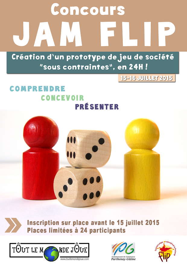 La 30ème édition du Festival Ludique International de Parthenay est terminée…le temps pour nous de nous en remettre tout doucement et de vous faire un retour et un bilan sur le concours du JAM FLIP organisé du 15 au 16 juillet 2015!