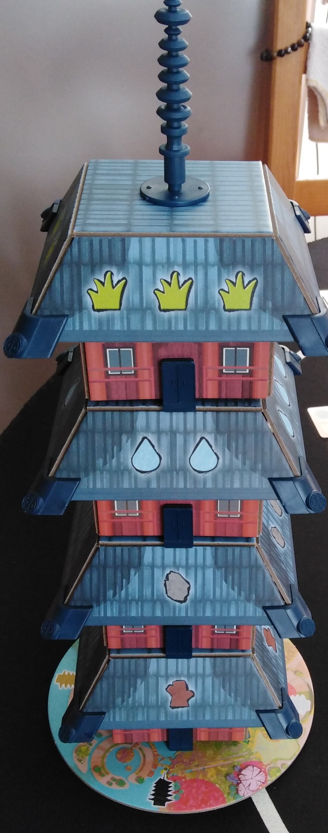 Petit bémol cependant, autant le jeu est très fluide à 2 joueurs autant à 3 et pire à 4, il devient un peu long. En effet, comme la Pagode n’arrête pas de bouger/tourner entre 2 de ses tours, on peut tenter de prévoir ses coups pendant le tour des autres mais quand reviendra son tour la position de la Pagode remet souvent tout en question donc il faut tout revoir et ça prend du temps.