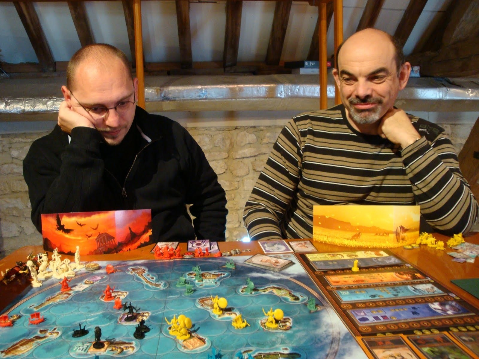 Ludovic Maublanc et Bruno Cathala entrain de jouer à Cyclades