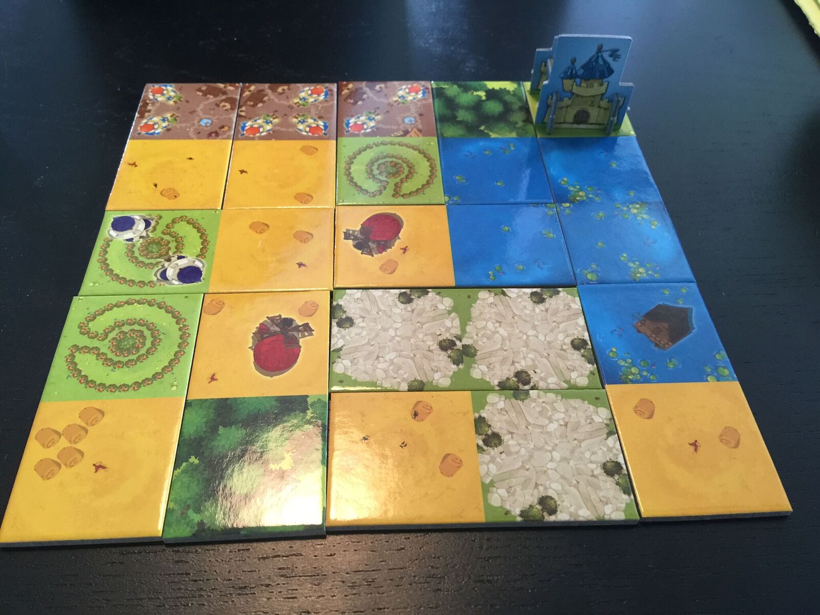 Enfin, une nouvelle série est dévoilée et c'est reparti pour un tour. Je construis et je me place pour la suite... Et au bout de 12 tour à 3 ou 4 joueurs, vous aurez placé 12 tuiles, soit 24 cases plus celle de votre château et hop, normalement vous avez votre 5 par 5.