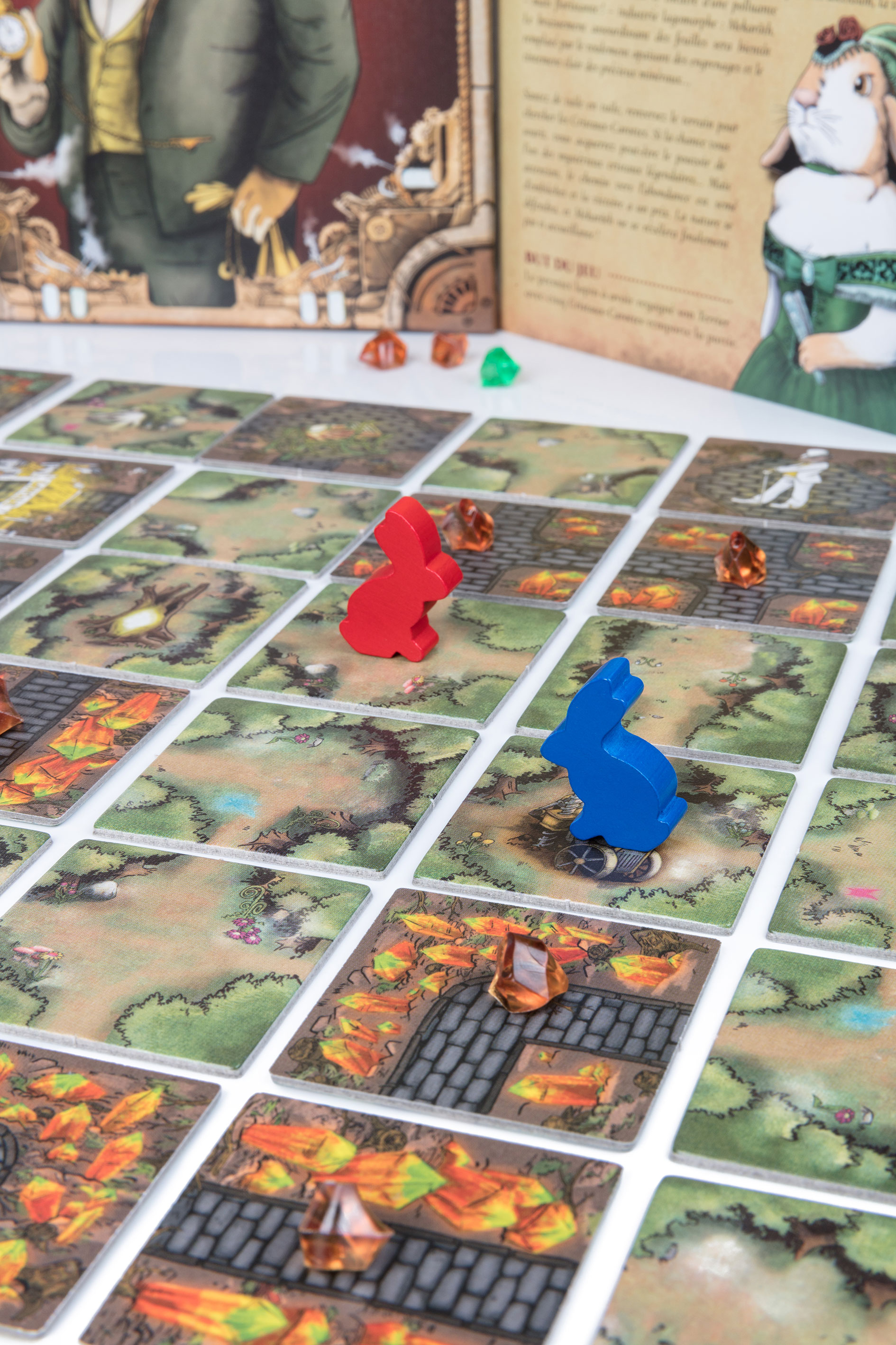 Le plateau est composé de tuiles dont les faces représentent la forêt d’un côté et la cité industrielle de Mekaröth de l’autre. Chacun leur tour, les lapins explorent le terrain en bondissant, réalisent une série d’actions et retournent les tuiles. La nature se transforme petit à petit en ville, révélant au passage les gisements de cristaux cachés. Mais l’aventure n’est pas de tout repos car la forêt sait se défendre, et le monde de Mekaröth ne se révèle finalement pas si accueillant ! Le premier lapin à avoir regagné son terrier avec suffisamment de Cristaux-Carottes remporte la partie.