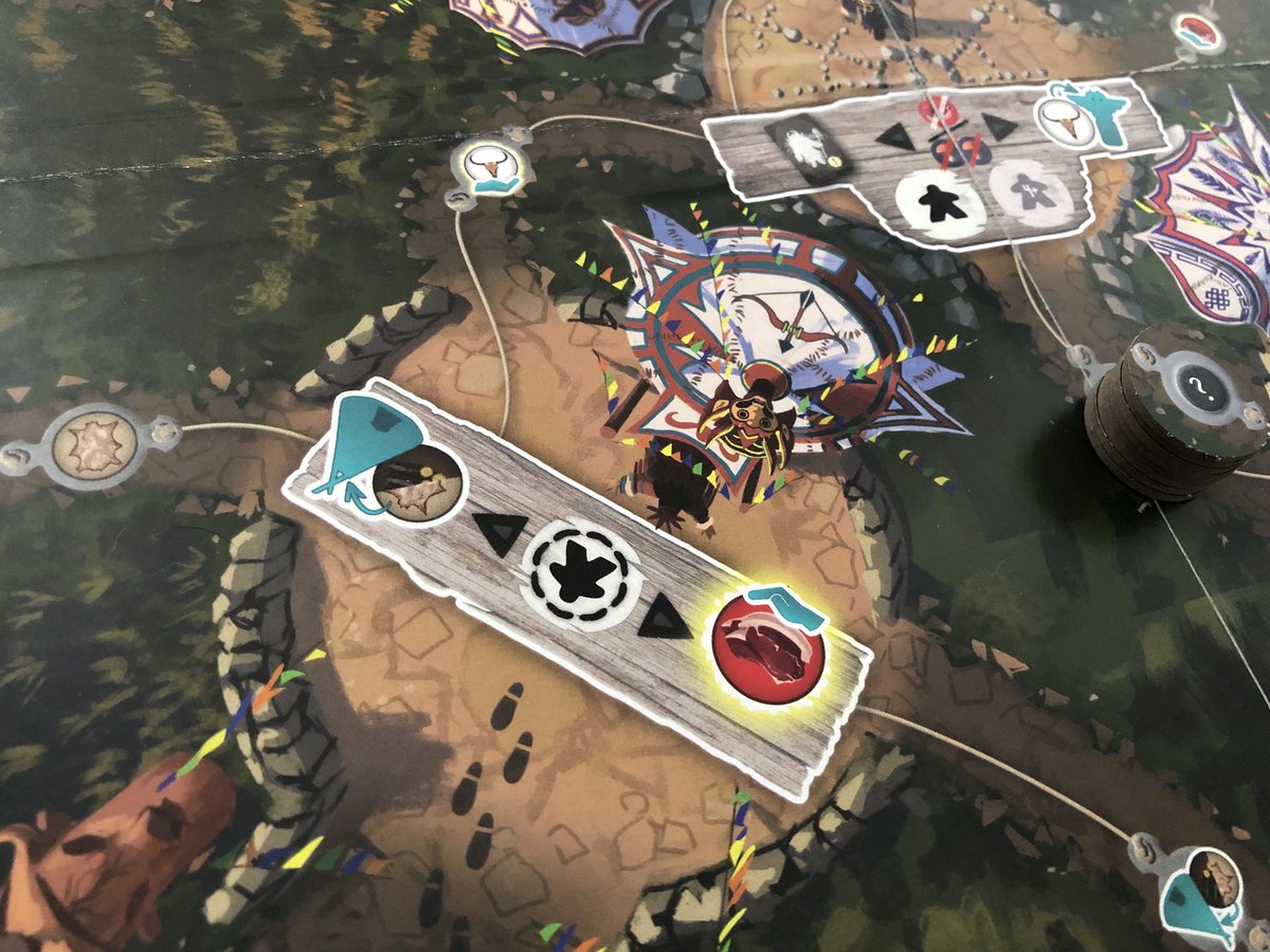 Pour moi l'ingéniosité se situe également au niveau des liaisons bonus, présentes entre les différents lieux du plateau. En fonction de votre placement, vous pourrez donc gratter gratuitement des actions bonus, mais pour cela il faudra respecter un placement scrupuleux, c'est à dire être sur les deux actions entourant la liaison bonus, et comme la majeure partie des lieux ne peuvent contenir qu'un seul nomade.