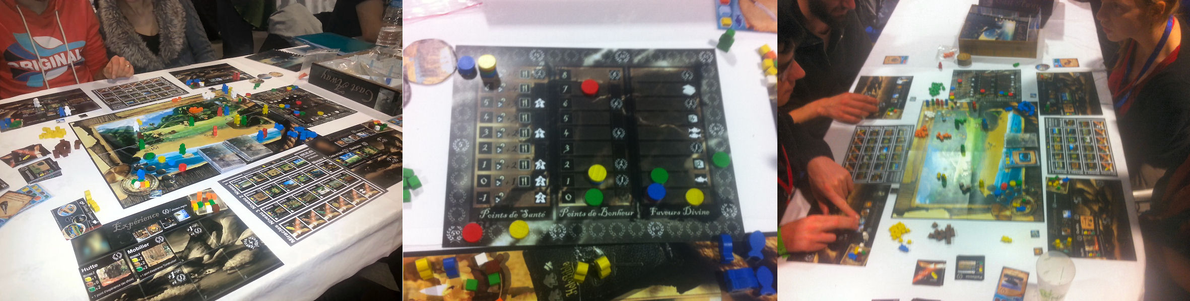 Une partie de CAST AWAY durant environ 2h à 4 joueurs, je n'ai pu faire tester le jeu qu'à 8 personnes lors du OFF, ce qui a frustré quelques personnes qui n'ont donc malheureusement pas pu y jouer. Je m'en excuse mais je ne souhaitais pas limiter le temps de jeu afin que les joueurs puissent profiter jusqu'au bout de la puissante immersion du jeu.