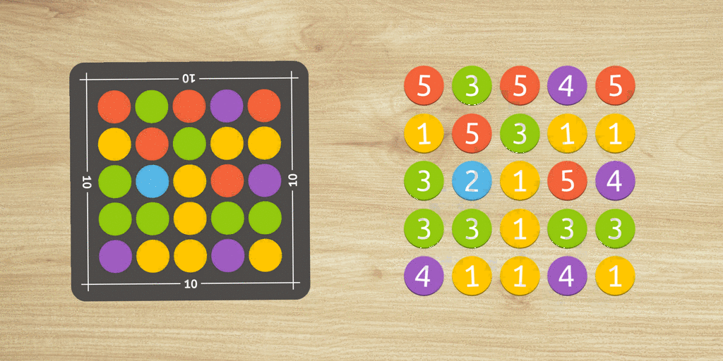 Un puzzle complet est un puzzle dans lequel la grille du puzzle est intégralement remplie par des pastilles de couleur. Pour résoudre ce type de grille vous allez devoir disposer les tuiles chiffres selon le modèle indiqué par la grille en enlevant celle qui vous paraissent être en trop. Pour chaque pastille de la grille, vous avez donc le choix entre utiliser la tuile chiffre de la couleur correspondante ou n'utiliser aucune tuile chiffre. A vous de faire le bon choix afin que la somme des tuiles chiffres de chaque ligne et chaque colonne soit égale au but indiqué sur la carte puzzle.