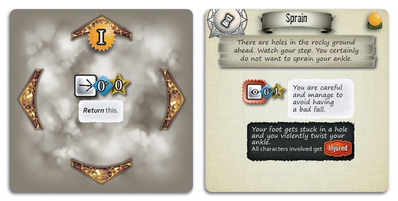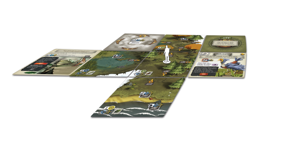 Chaque carte montre différentes actions que vous pouvez effectuer si votre personnage y est présent, comme la recherche d'une grotte ou grimper une falaise précaire de manière à obtenir une meilleure vue de la zone environnante.