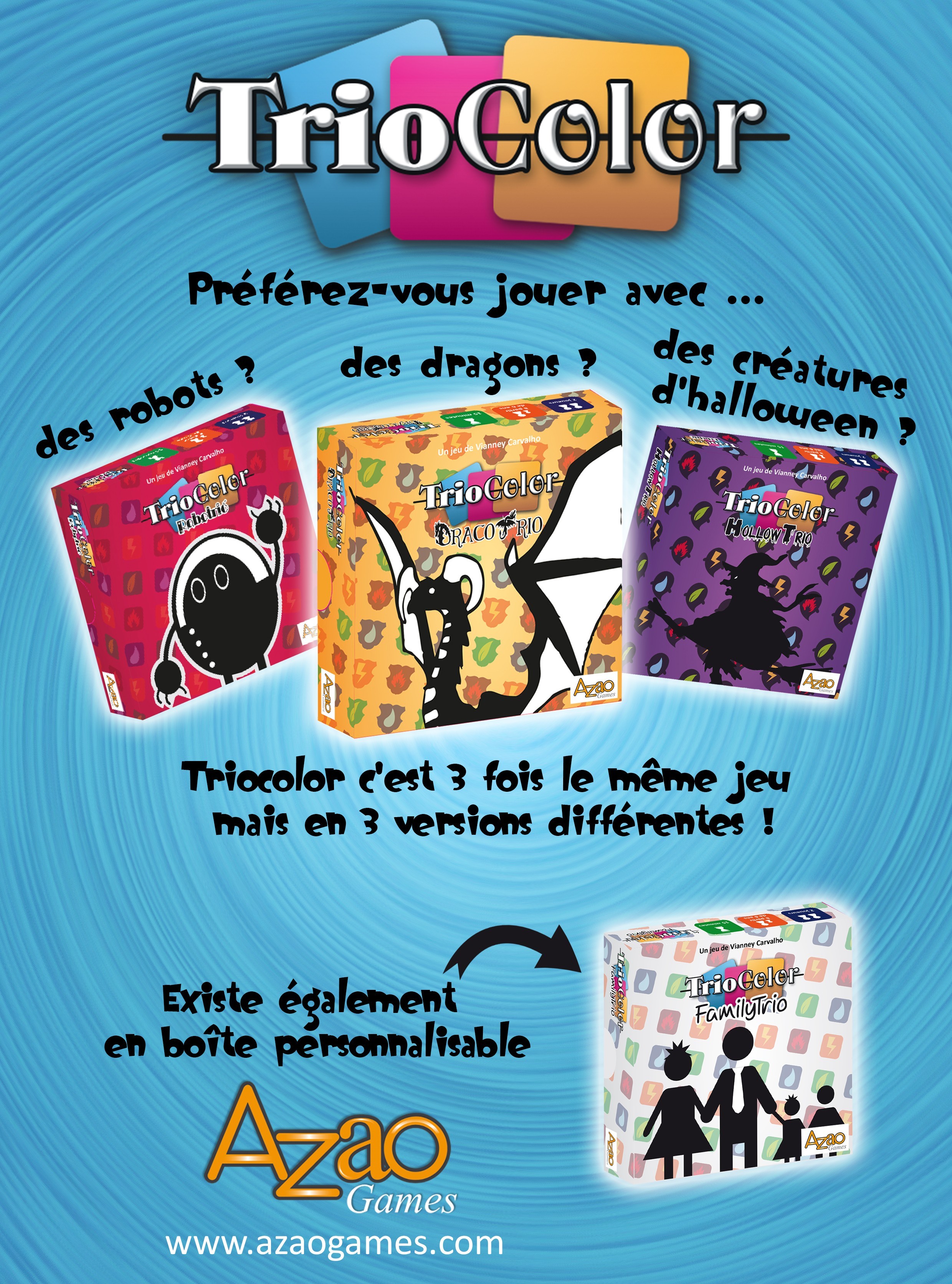 Triocolor c’est 3 fois le même jeu mais en 3 versions différentes.