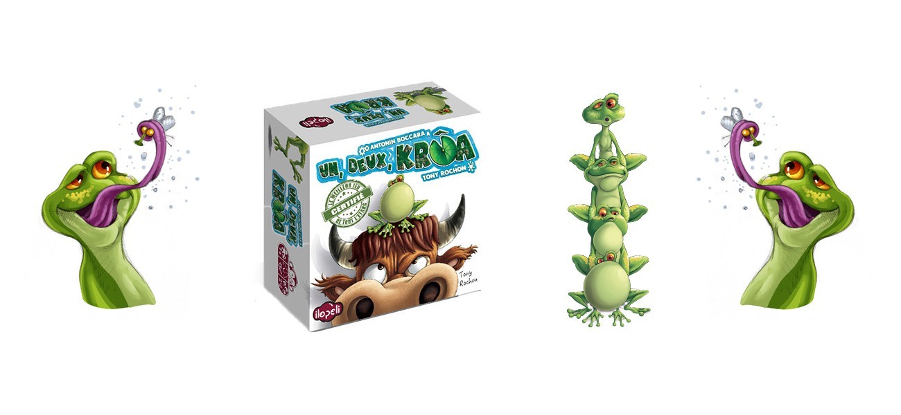 C'est dans la gamme Filou le singe chez Ilopeli que sort de la mare un nouveau jeu d'Antonin Boccara qui était il y a peu au Festival Ludique International de Parthenay concourant pour le trophée Créateur avec Orchestra. Les 2 à 6 joueurs qui s'affronteront les pieds dans la vase devront avoir 7 ans ou plus et gonfleront en essayant de ne pas éclater pendant 15 minutes.