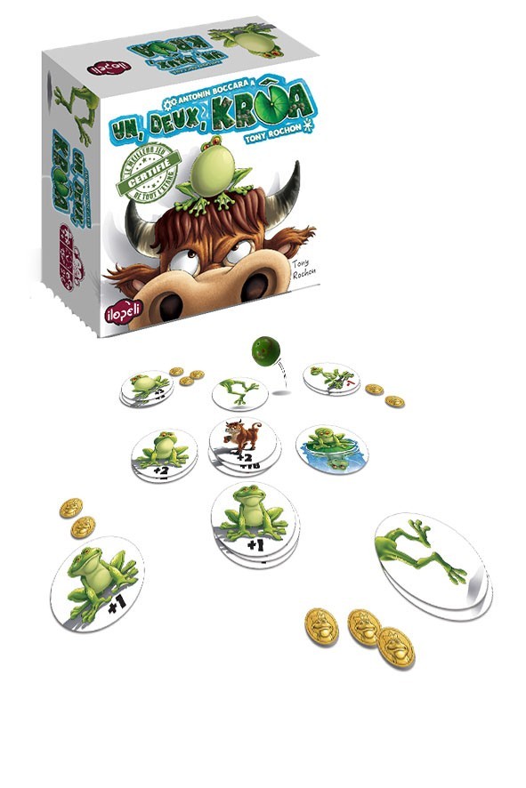 Dans l'étang ludique, se démarquer n'est pas chose aisée. Ici, l'utilisation d'une puce sauteuse aux couleurs verte grenouille interpelle tout autant que le claquement de cette dernière au milieu des gestes effrénés des participants à se coller des "bouses" (de boeuf) autant qu'à se garder les bonnes cartes. On finit par ne plus trop savoir où en est notre brave amphibienne, mais c'est aussi ce qui est drôle. Les bras se croisent dans un ballet (aquatique) avant de faire le bilan et voir qui s'est éclaté... ou pas ! De quoi faire quelques bonnes parties en prenant l'apéritif à la fraîche, au bord de la piscine, avec, en fond sonore, ces mêmes grenouilles qui conjuguent leurs chants à ceux des cigales... en attendant la TTTV à la rentrée !