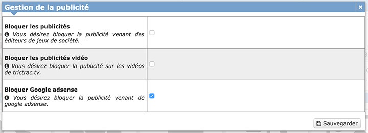 Du coup, Monsieur Olivier a rajouté l’option. Sur votre compte, dans le la section « Gestion de la publicité », vous avez maintenant 3 cases à cocher.