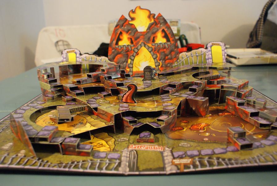 Nous allons passer très vite sur le tour des joueurs puisque, dans l'ordre déterminé par ces derniers, chacun pourra faire trois actions qui, classiquement, lui permettront de se déplacer ou d'attaquer, d'utiliser une compétence ou une action spéciale du scénario, voir d'interagir avec certaines cartes du scénario ou d'échanger des objets (encore des cartes) avec d'autres joueurs.S'activeront alternativement après l'ensemble des joueurs, les wyrms, les méchants de base du jeu, 8 figurines un peu à la démon-gorgon à grandes dents... Mais familial... Puisque le style des figurines est assez chibi-kawaii ! Globalement, on tire une carte Wyrms pour leur activation, carte qui nous renseigne sur les ennemis qui "spawnent" via le vortex et les activations dont ils disposent. Chacun "focuse" le joueur le plus proche et s'en approche pour lui coller des patates. Leurs attaques réussissent automatiquement ce qui finit par assommer quelques héros, retournant ainsi, pour sortir de cet état, les jetons sabliers... Et s'il n'y a plus de sablier, la partie se termine.