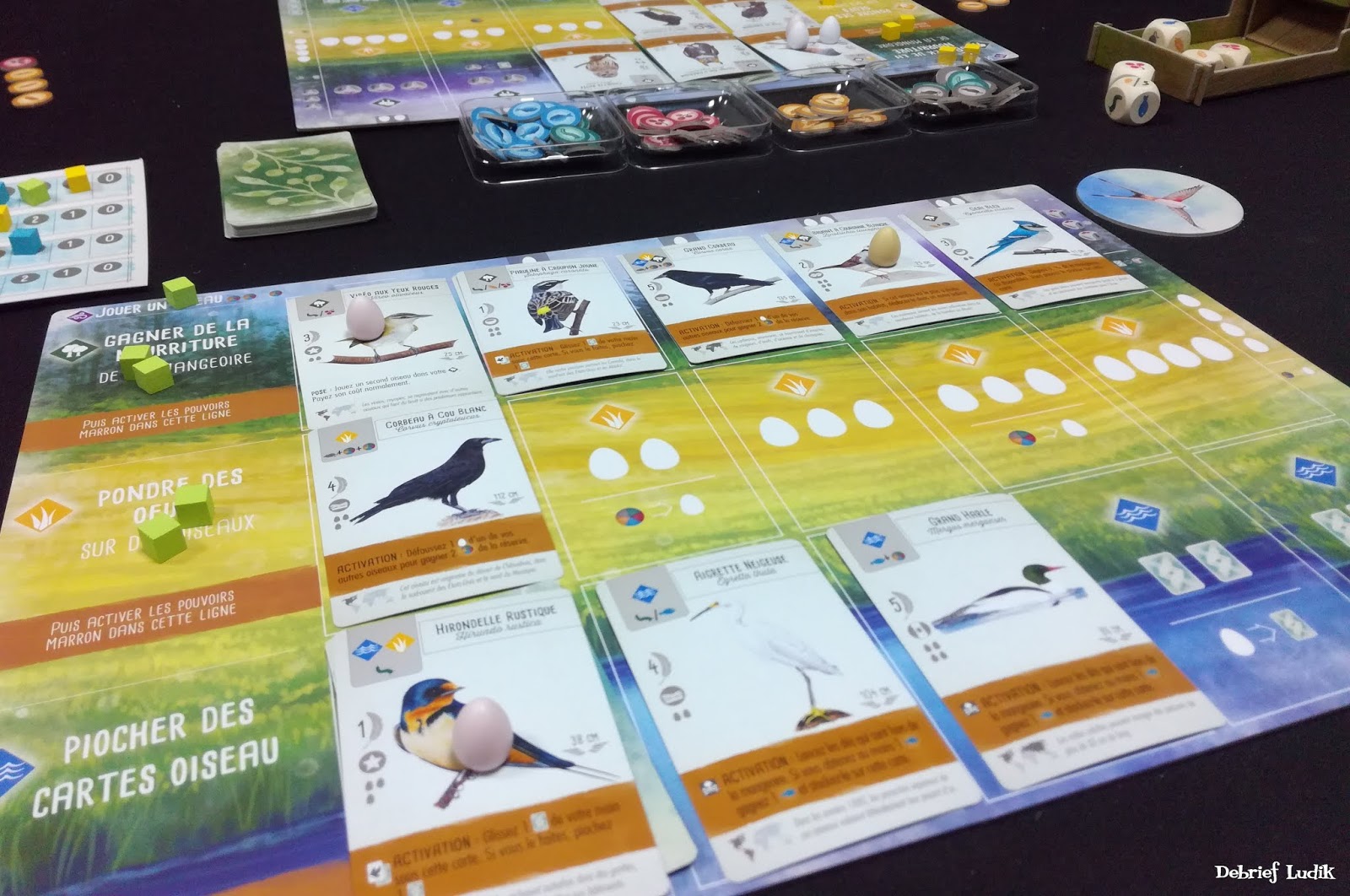 On prend le nombre d'oeufs correspondant à la case où l'on se trouve (de 2 à 4 oeufs) et on les dépose sur nos cartes oiseaux précédemment posées.