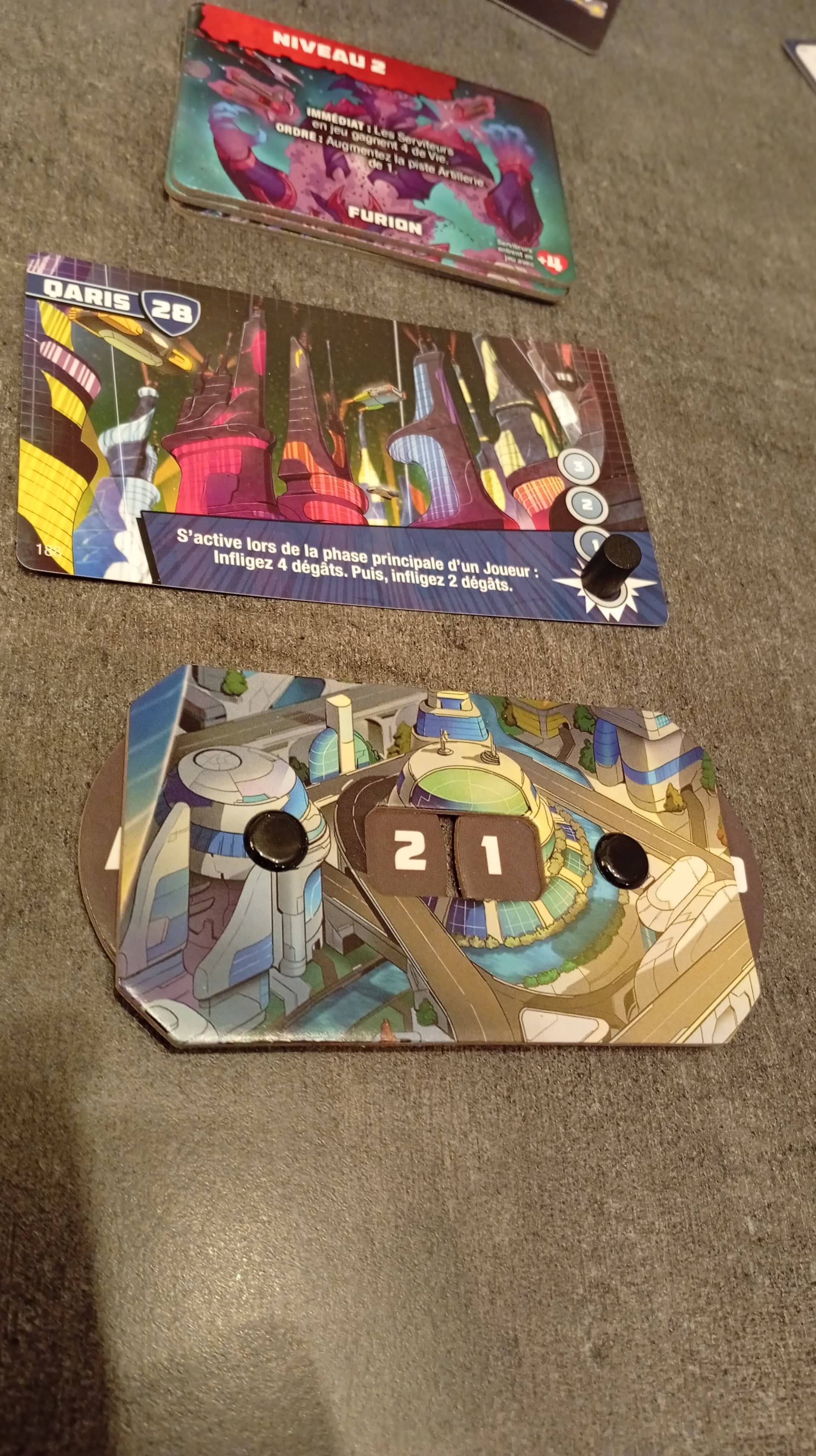 Les 6 rivières de cartes (chacune des 6 piles (2 énergies, 1 techno et 3 d’armes) remplacent le marché fixe et accessoirement ça fait gagner un temps fous à la mise en place et au rangement) avec le gros avantages de multiplier l’asymétrie entre joueurs.