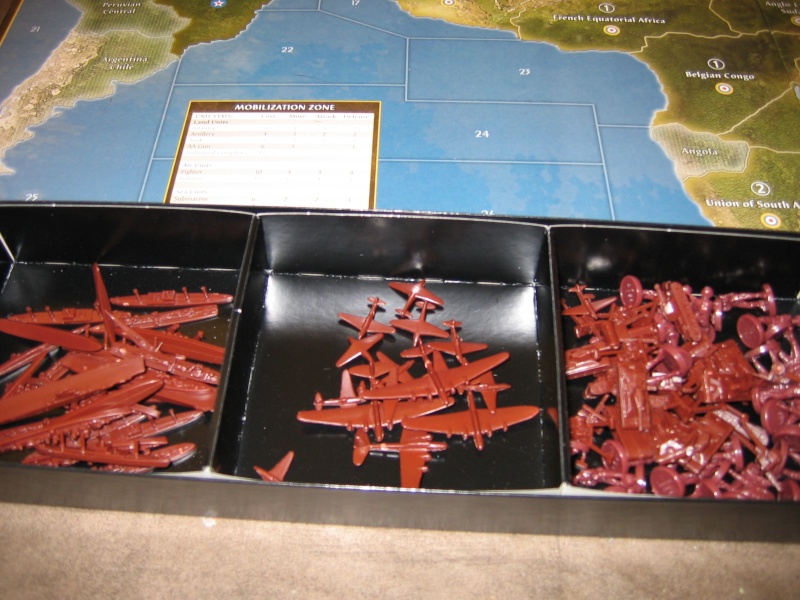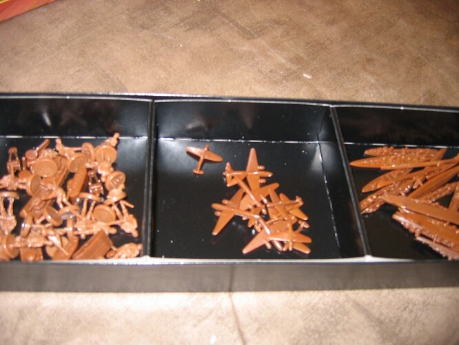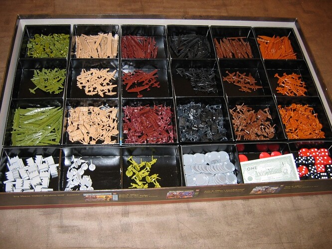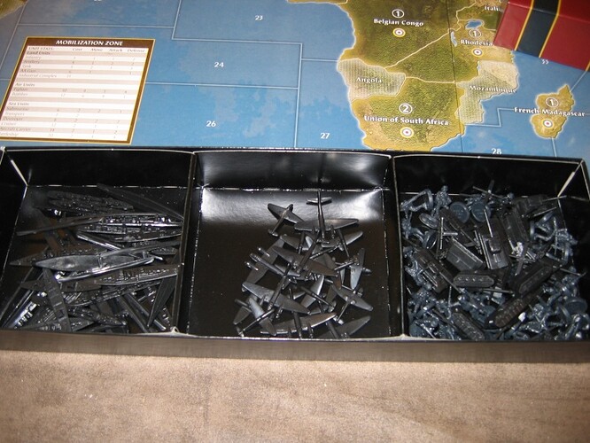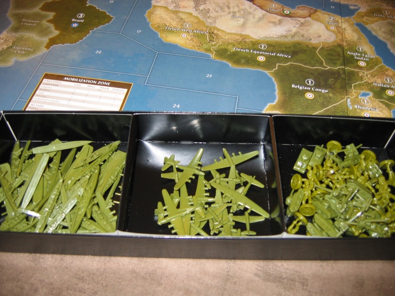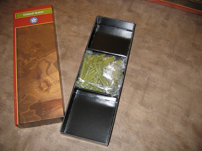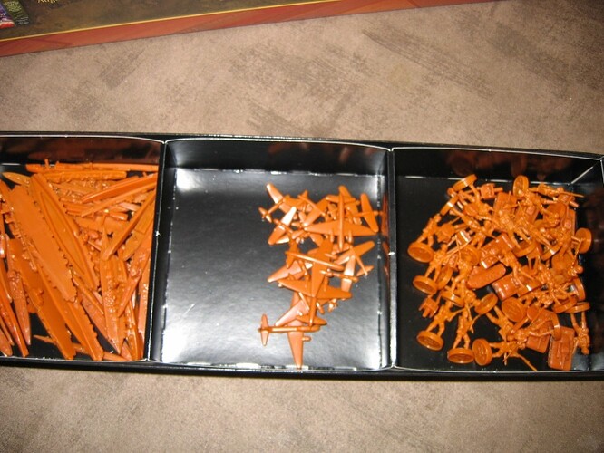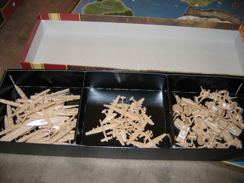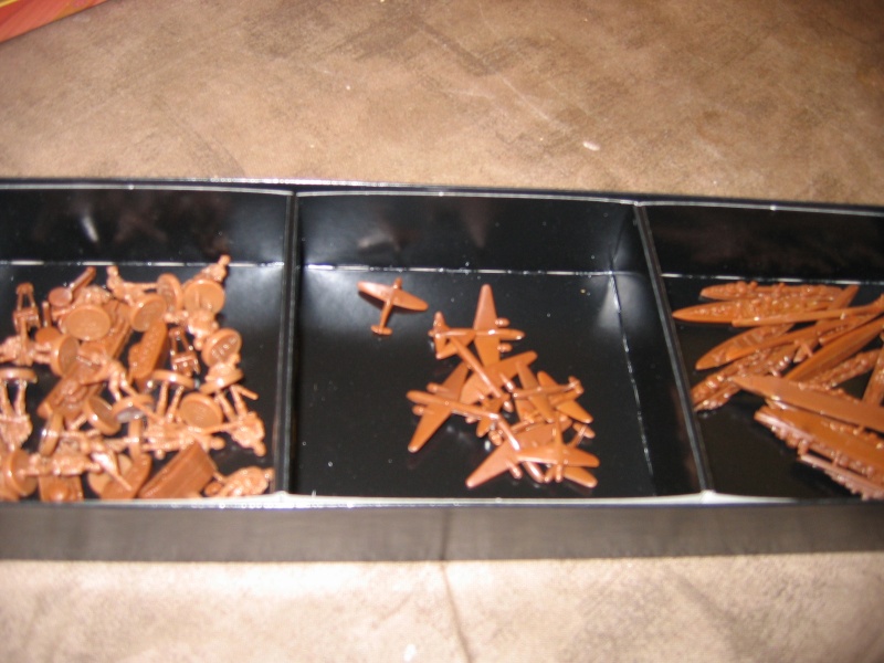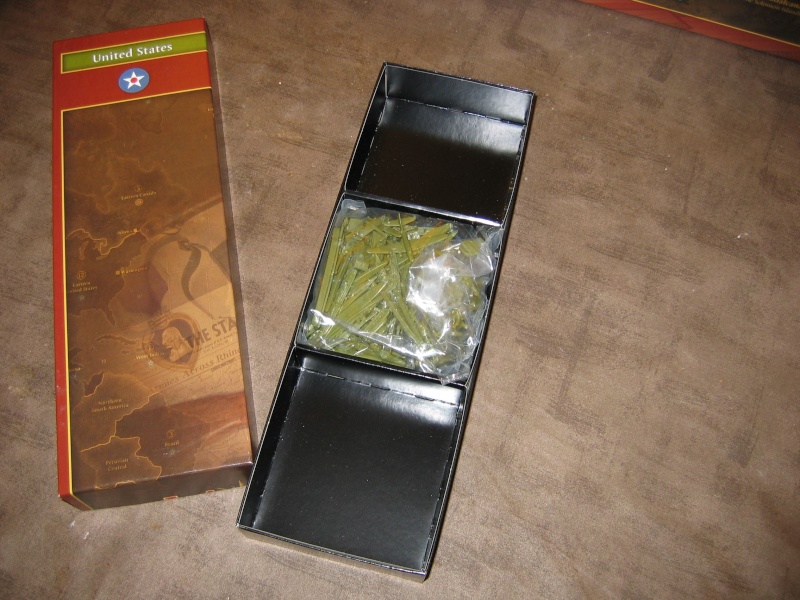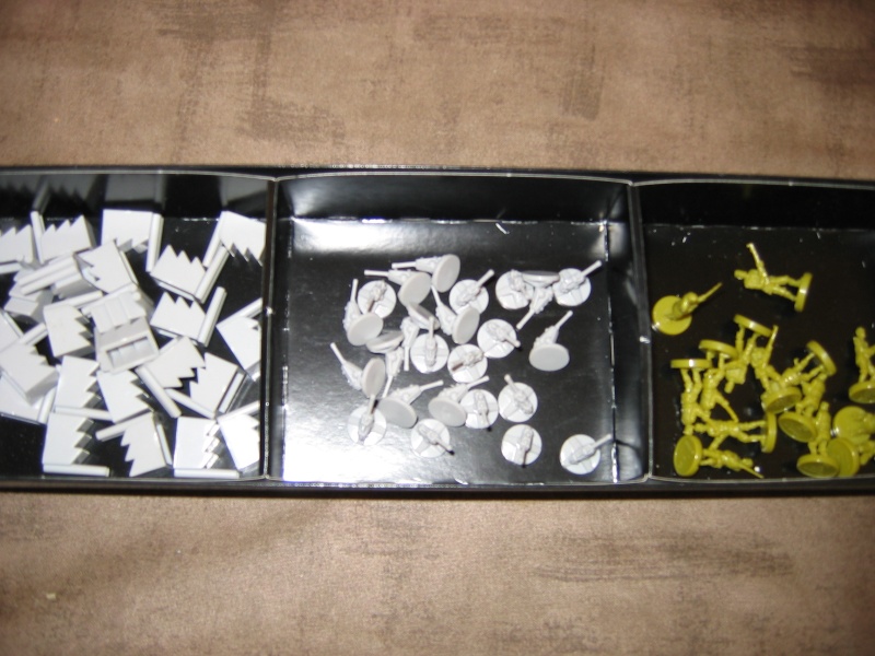 Voici l’intérieur d’une boite comme il est livré : chaque nation a un sachet de figurines à ranger dans un casier compartimenté !!!