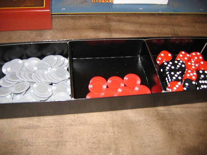 La boite jetons + dés.