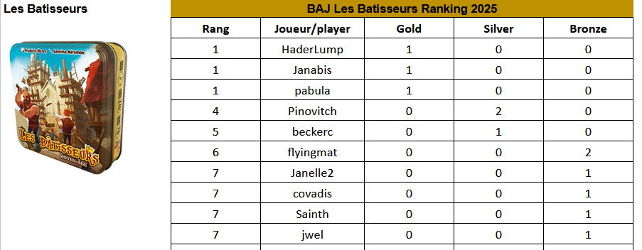 Classement Bajique Les Batisseurs toutes versions après 3 tournois: