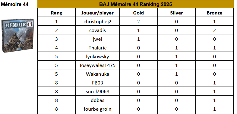 Classement Bajique Mémoire 44 après 4 tournois: