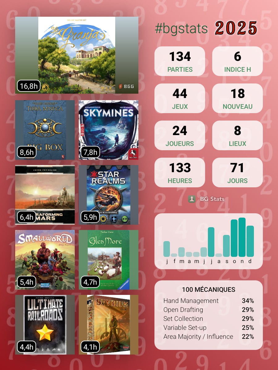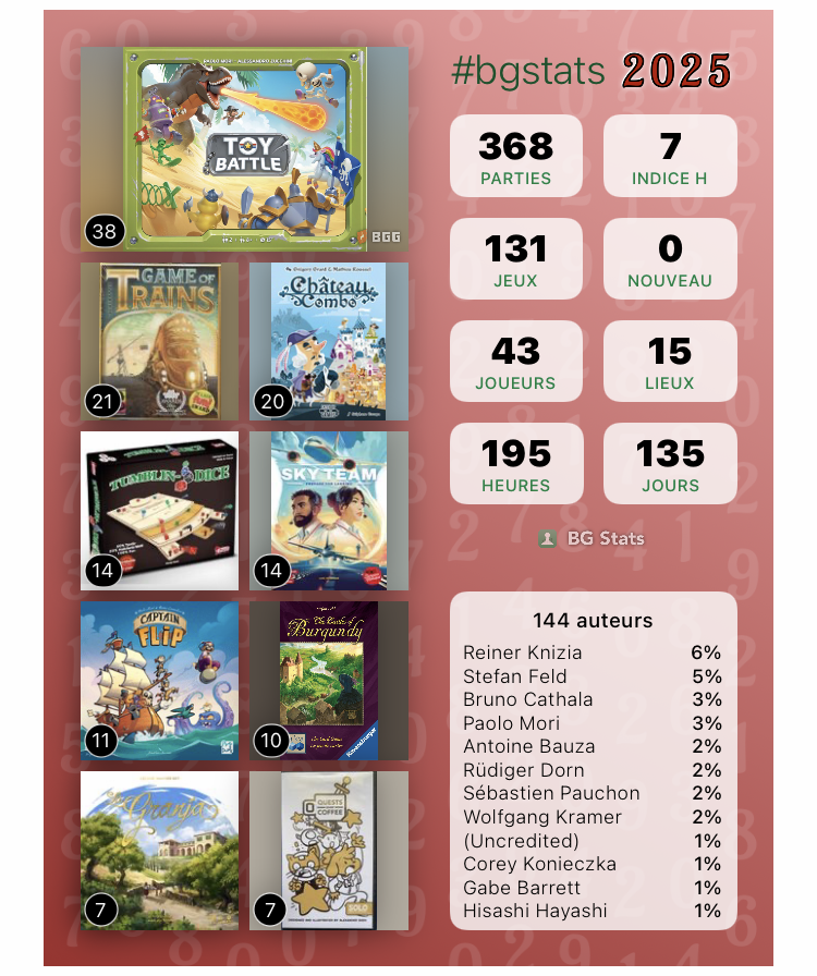 Dans l’ensemble cette année n’a été ni vraiment bonne ni vraiment mauvaise : une sorte de continuité. La pratique ludique évolue, ni forcément pire ni franchement meilleure qu’avant, mais comme je vieillis aussi pas mal, ça se ressent à l’heure des comptes.