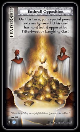 Donc, ma question va porter sur la carte Leadership Hoax #28 : Enthrall Opposition