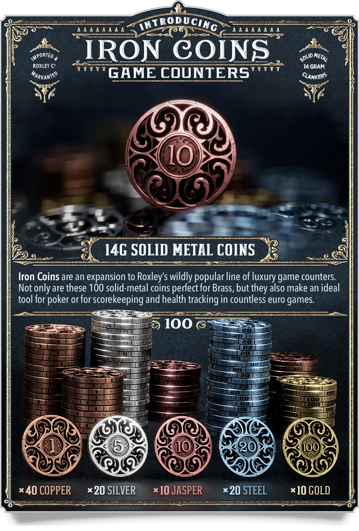 Pour avoir eu les iron clays lors de la première campagne roxley (et a une fraction du prix actuel…) je dois admettre que c’est probablement la grosse (seule ?) plus value de cette version. J’adore ces jetons, je les utilise dans plein d’autres jeux pour compter les points ou les sous. C’est super sympa à Flip7 par exemple.