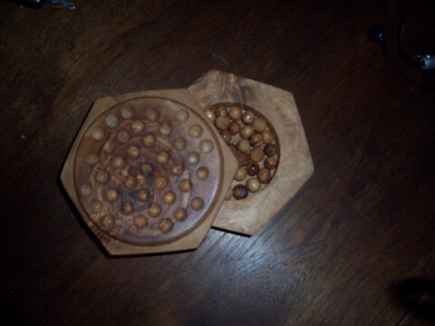 De plus les lignes du quadrillage formé par les trous ne sont pas vraiment droites. Remarquez ça vient peut-être du fait que le jeu est artisanal. Les billes semblent être des graines un peu comme l’awele.