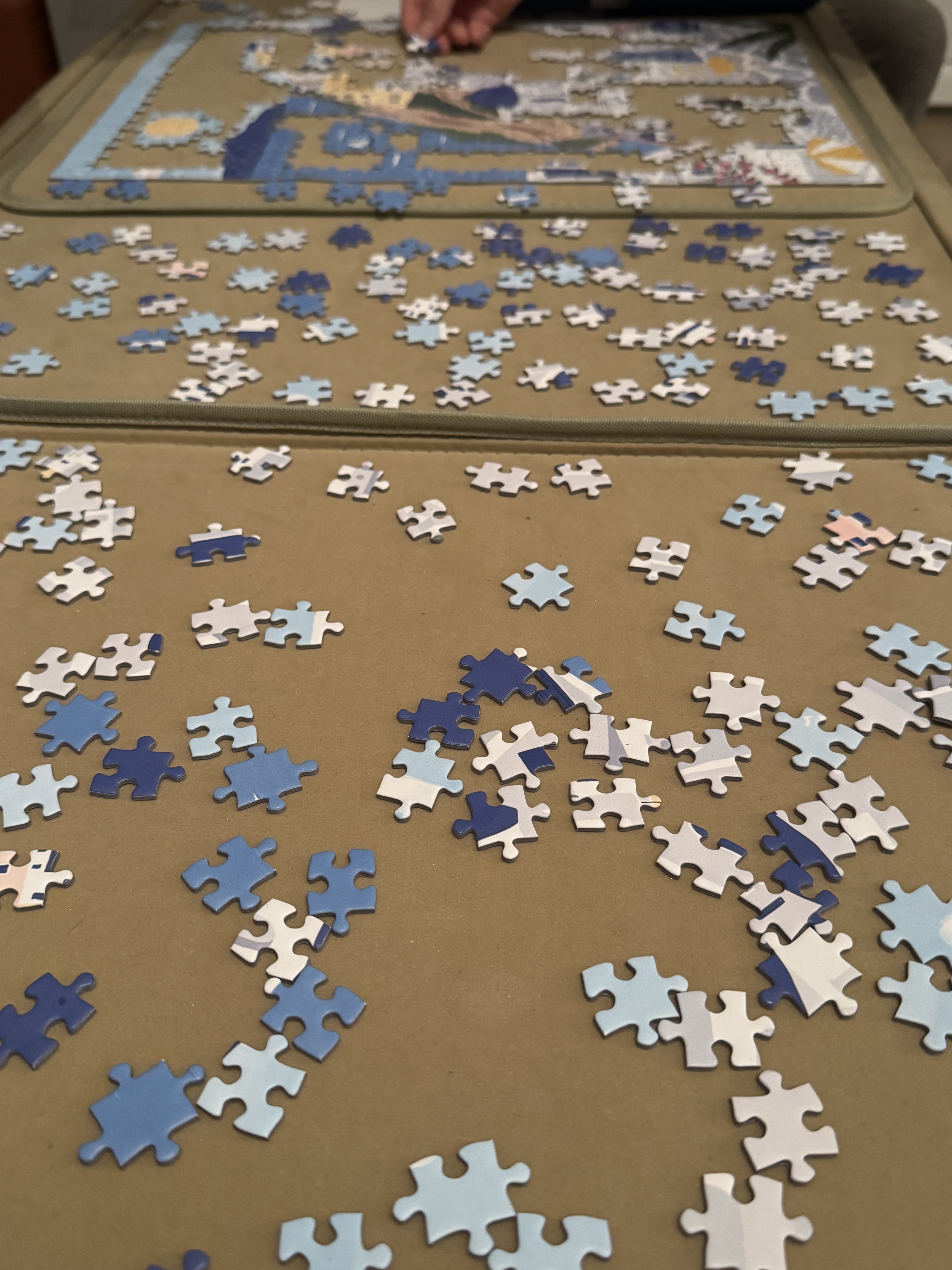 Impossible de faire des puzzles chez moi depuis un bon bout de temps, because trop d’activité, mais hier c’était puzzle collectif chez une pote.