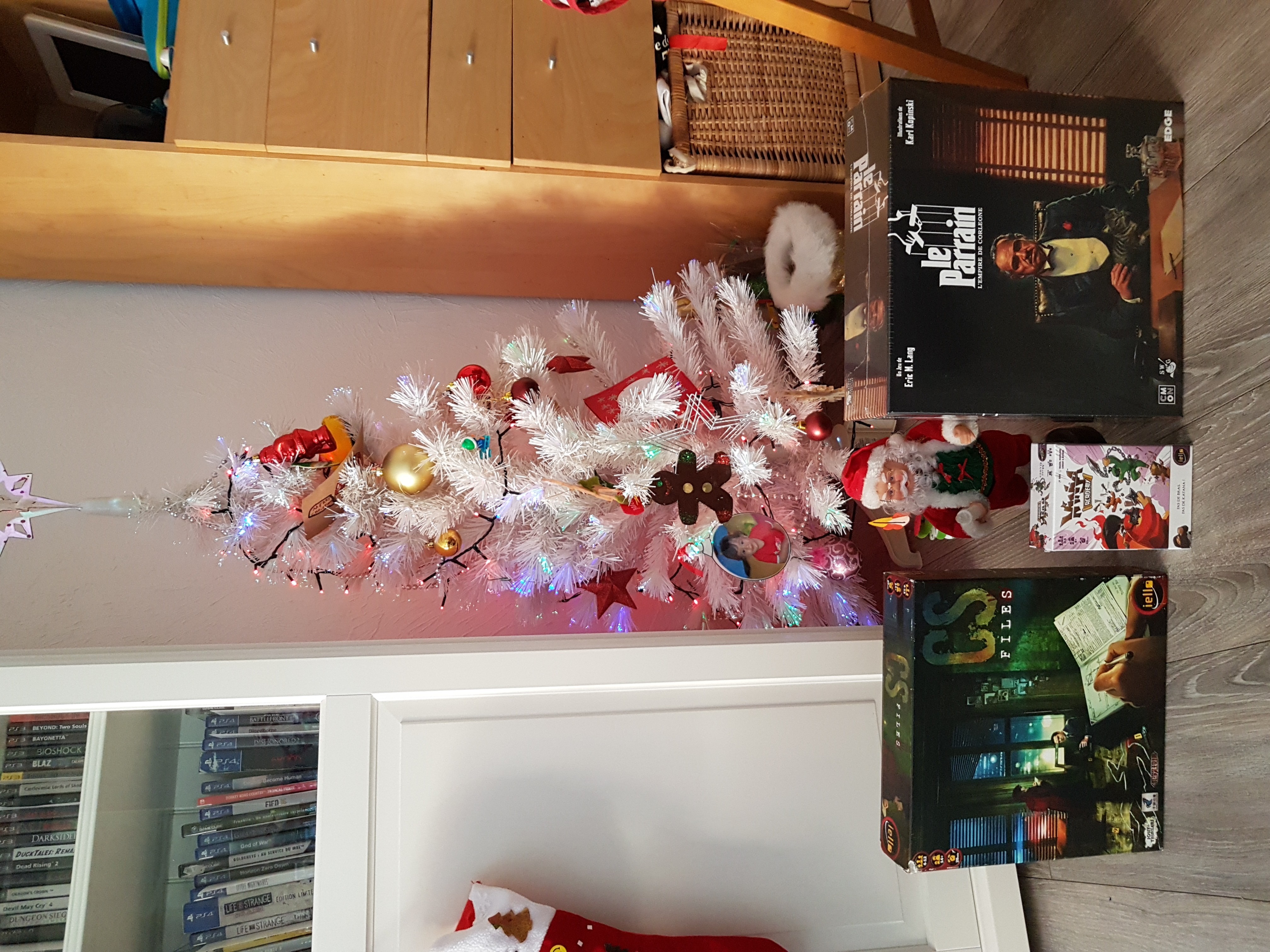 -Le 1er paquet à avoir succombé contenait Le Parrain. Que dire, ce jeux était dans ma liste de souhait. C’est un jeux que j’ai pratiqué plusieurs fois, un jeu excellent au packaging magnifique. J’avais hésité plusieurs fois à me l’acheter mais le prix m’avait toujours rebuté. Un excellent choix de ma Maman-noël.
