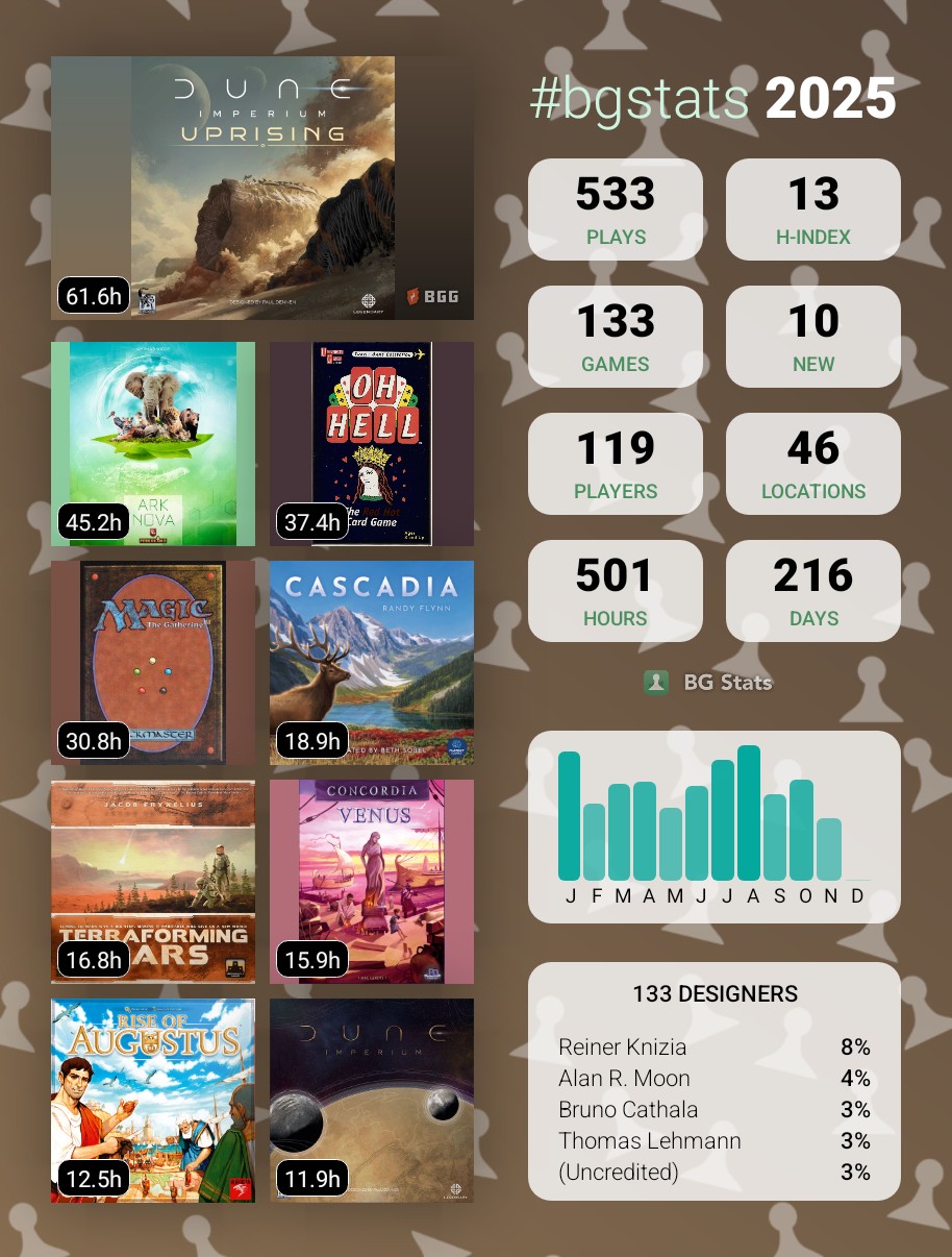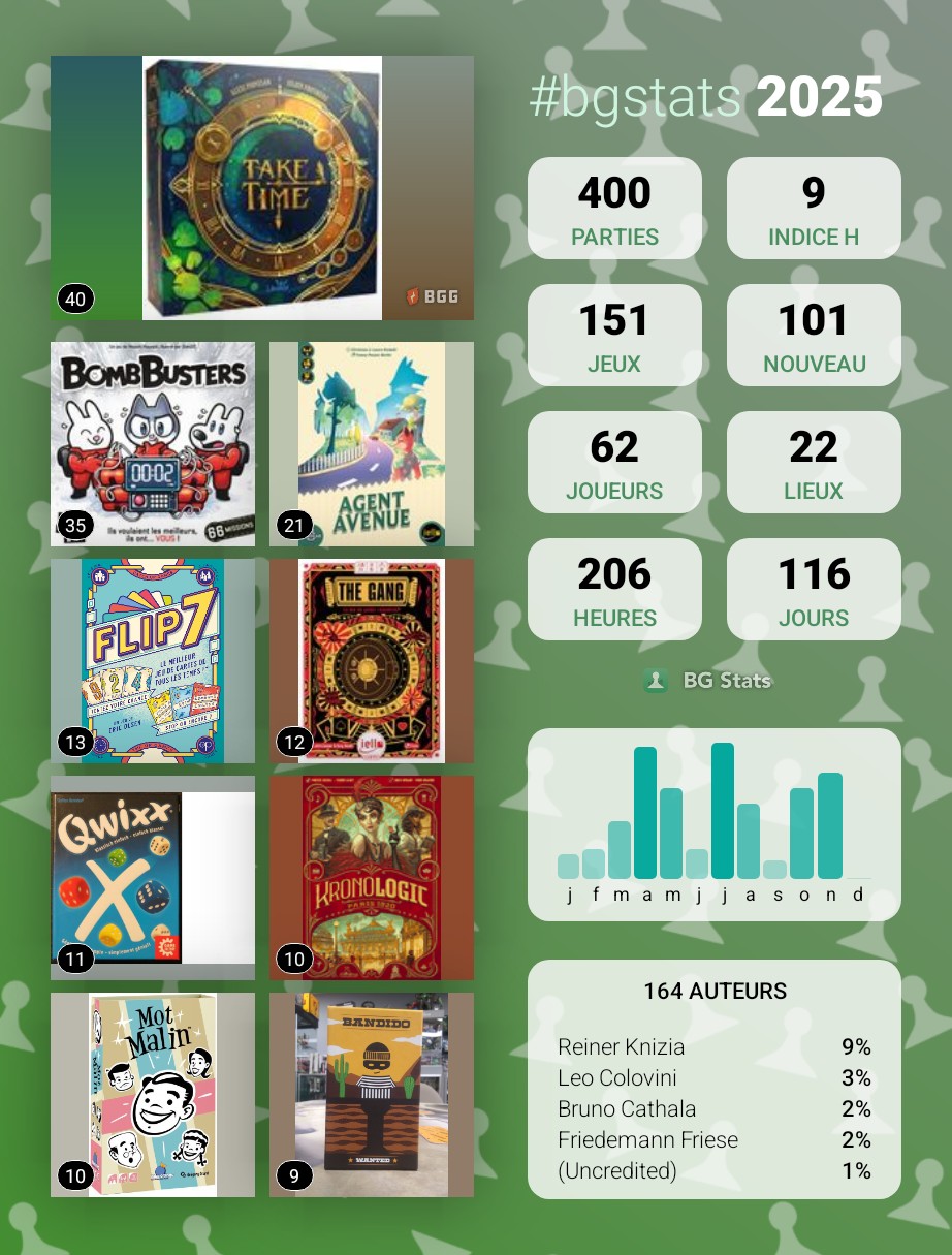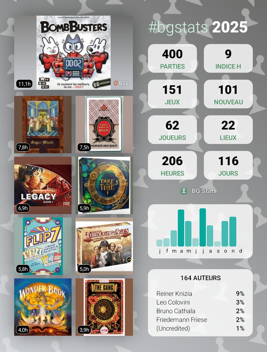Compliqué cette année ! 62 jeux joués et 227 parties… Statistiques en berne !