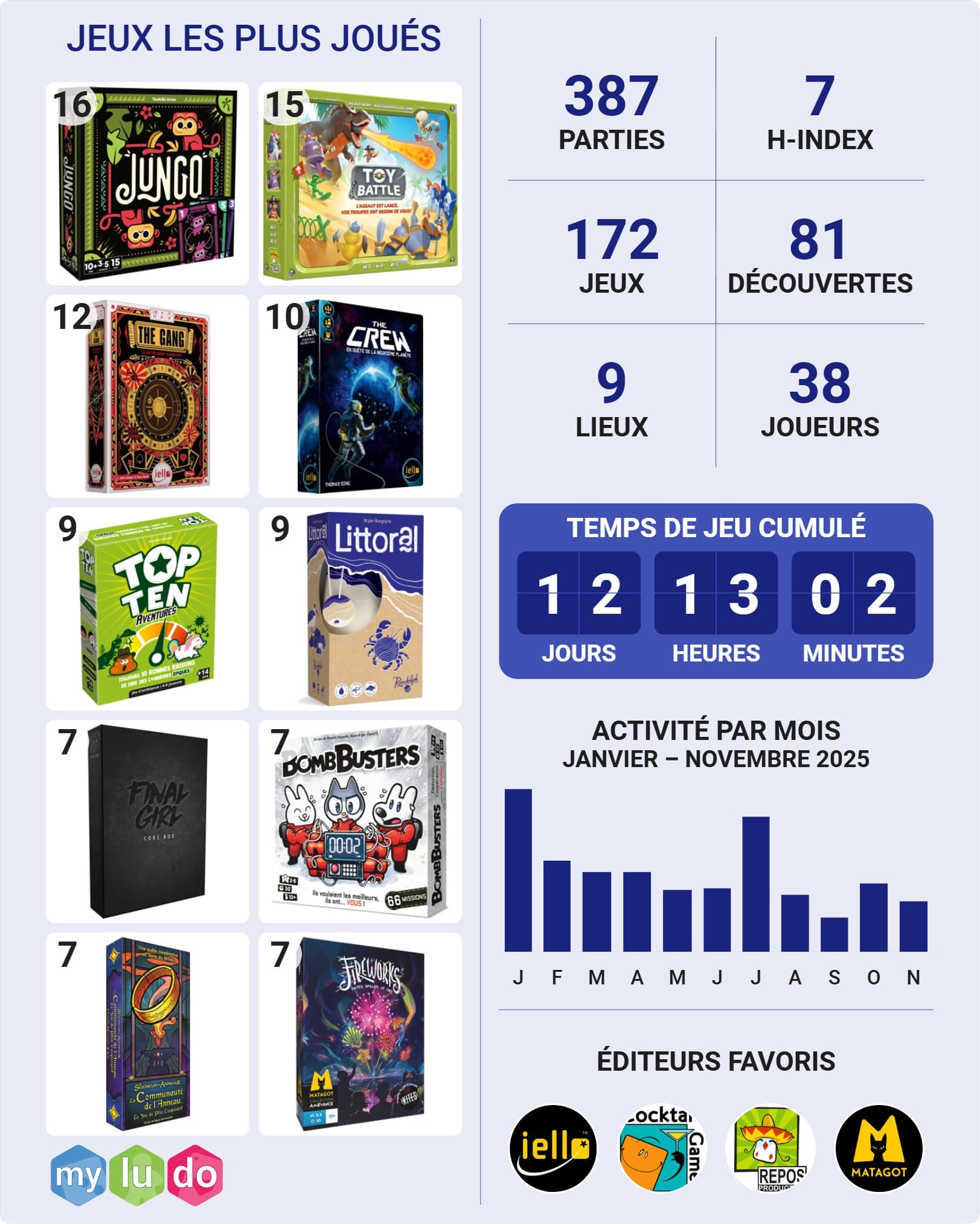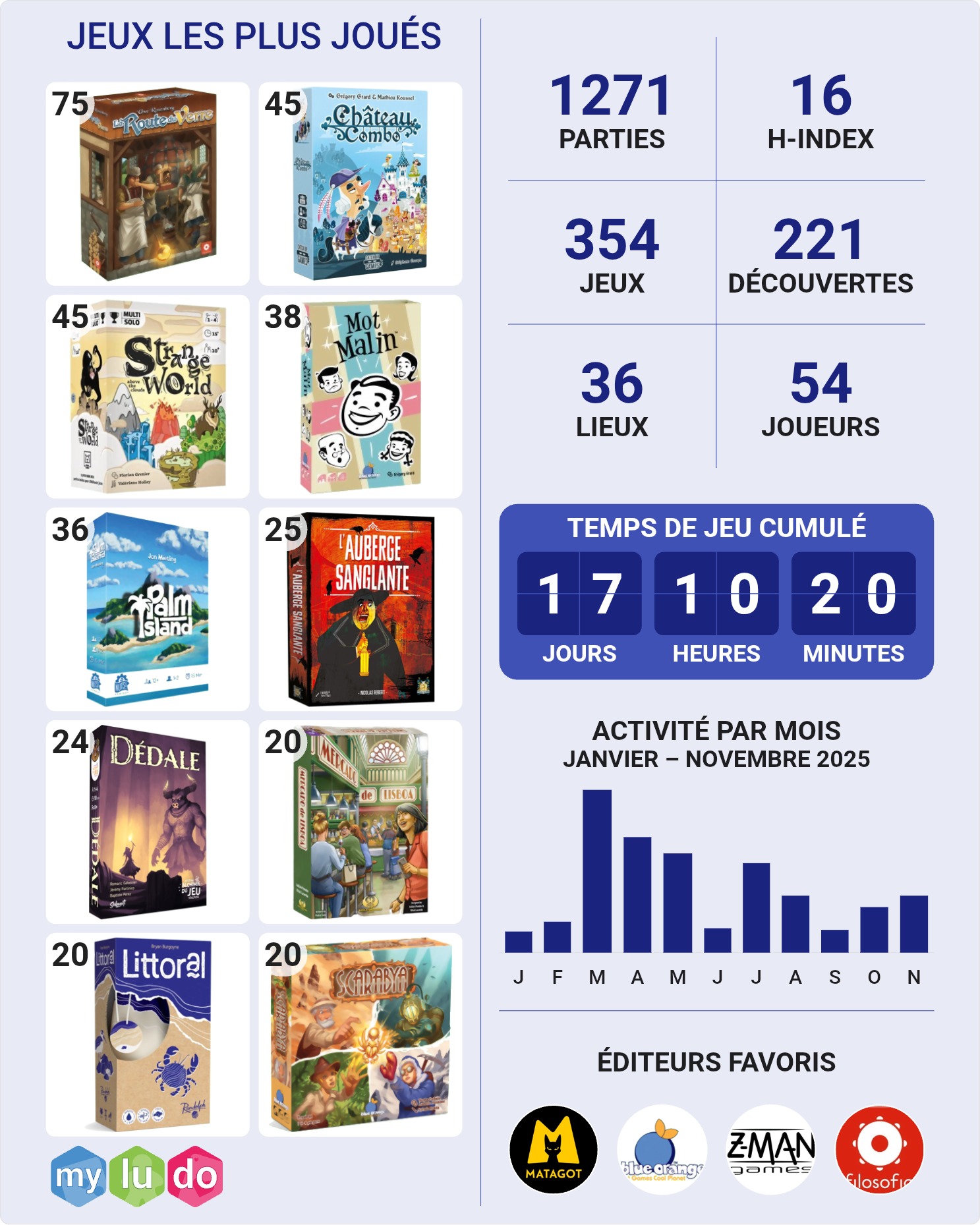 100 jeux, 511 parties, 48 découvertes.