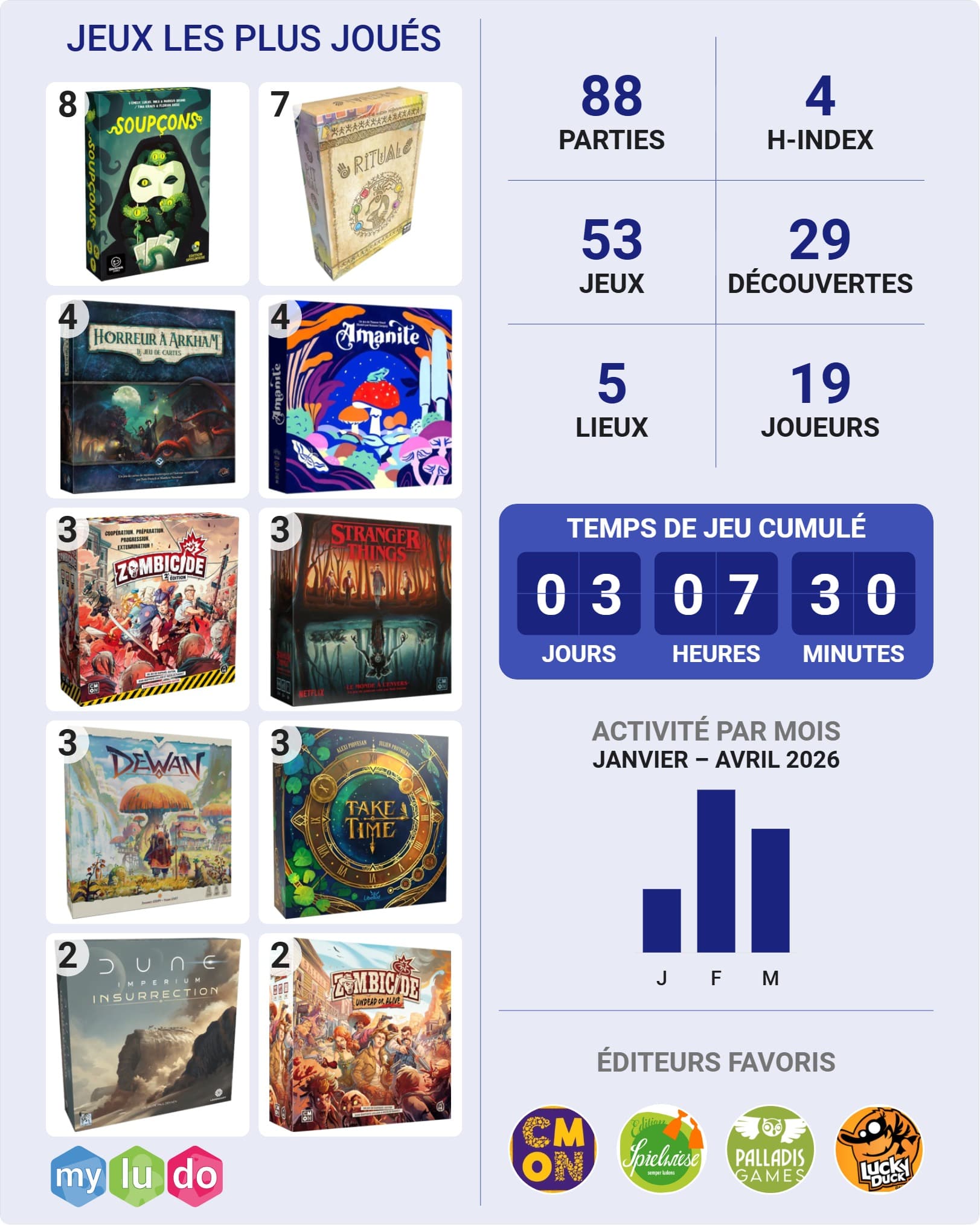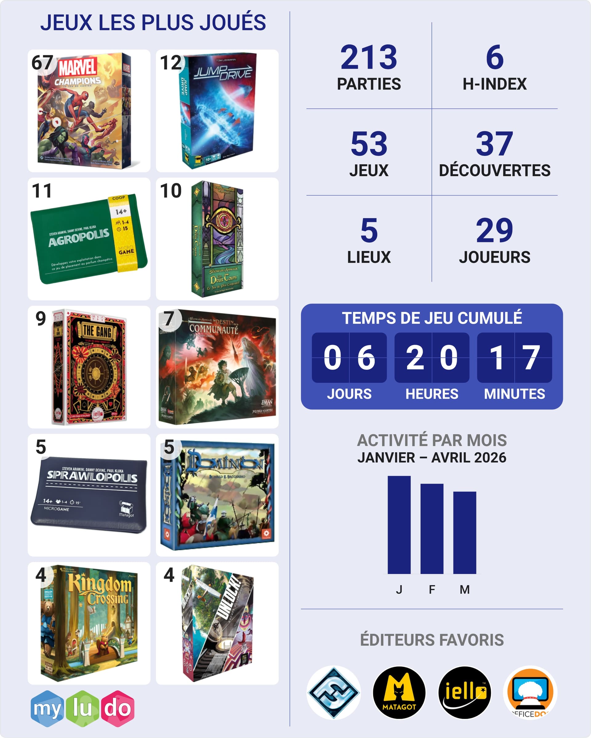 Les 12 découvertes sont un trompe-l’oeil, j’utilisais assez peu MyLudo jusqu’à présent.