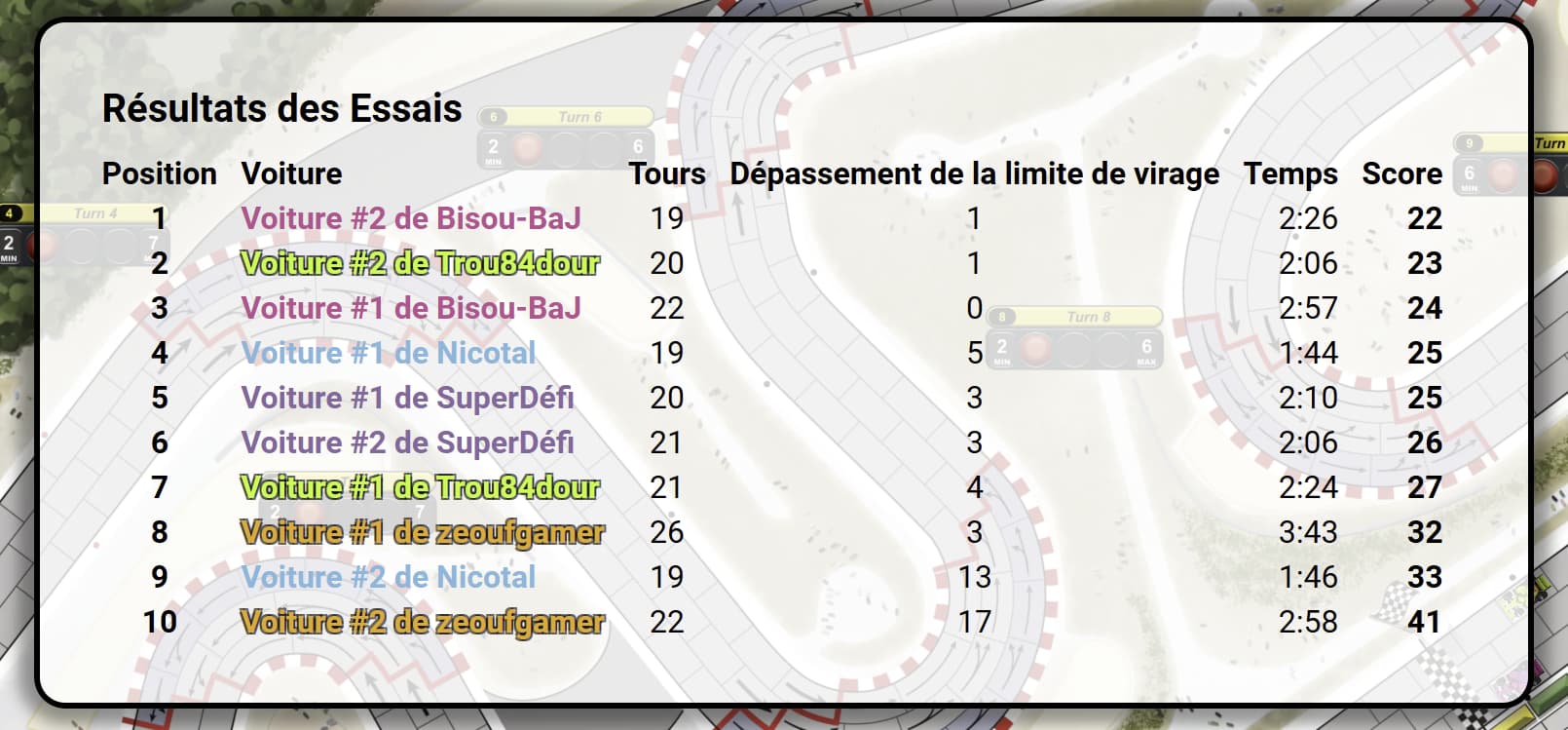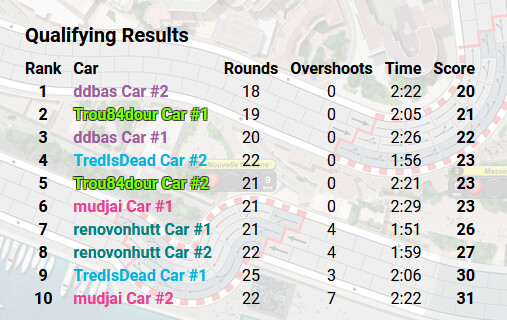 Et du coup y a un petit biais dans le système ! Faut surtout pas se lancer dans une qualif quand le site BGA lag, sinon tu prends de grosses pénalités de temps pour ton classement. Il m a fallu plus de 4 min sur mes deux qualifs de Monaco, ça pique sur la grille !