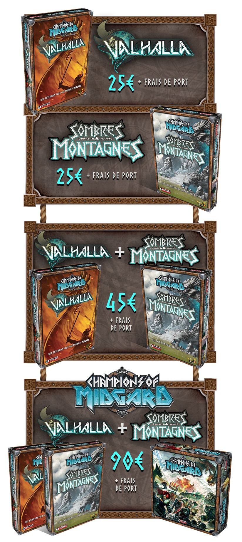 Voilà une campagne de financement qui vient débuter sur Game On Tabletop pour les extensions Sombres Montagnes et Valhalla de l’excellent jeu (oui c’est mon avis ^^) Champions de Midgard édité chez Don’t Panic Games.