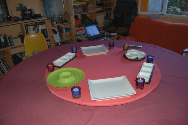 Marcel, tu me livres une caisse de trucs à boire… je reçois ce soir… 12 convives… Méga table ronde maison (1m80 de diam) avec plateau tournant à billes (maison aussi)