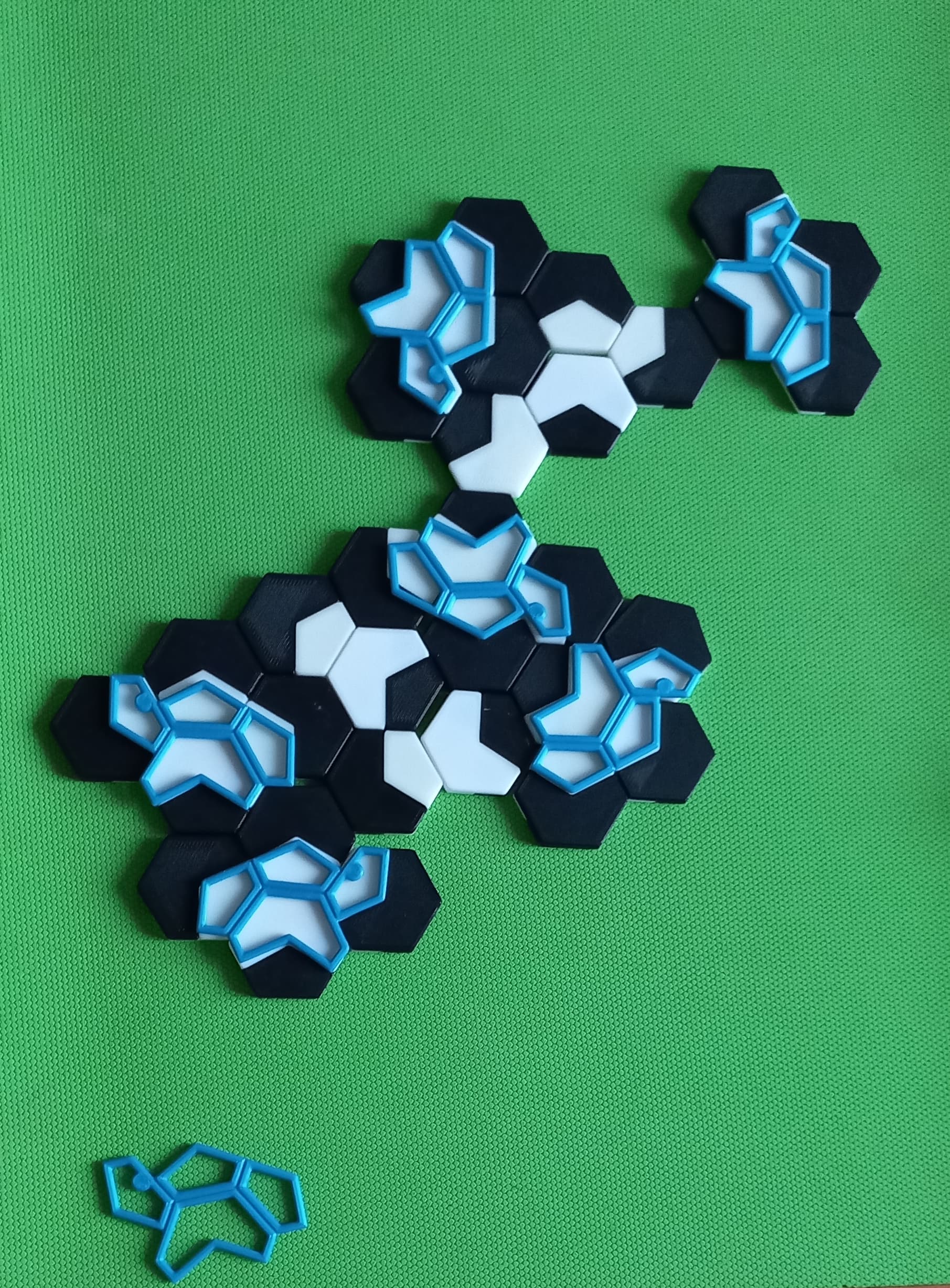 Mais, comme cela est apparu dans la partie, la lecture de la forme géométrique est loin d’être évidente (et les géométries à bases d’hexagones sont toujours plus difficiles que celles à bases de carrés).La mécanique fonctionnant bien, je vous invite à explorer d’autres pistes :