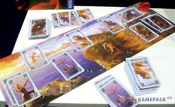 La limite de cartes en main (de 5 ou 6 cartes en fonction du pion Dragon) ne permet cependant pas de très grands choix, j’ai eu l’impression de jouer à chaque fois ce qui paraissait évident. On peut essayer de se souvenir des cartes posées par l’adversaire, car il a le même deck que nous (s’il a posé pas mal d’archers, c’est moins risqué de poser des cartes dragons car il est moins probable qu’il puisse poser 3 archers et tuer vos dragons).